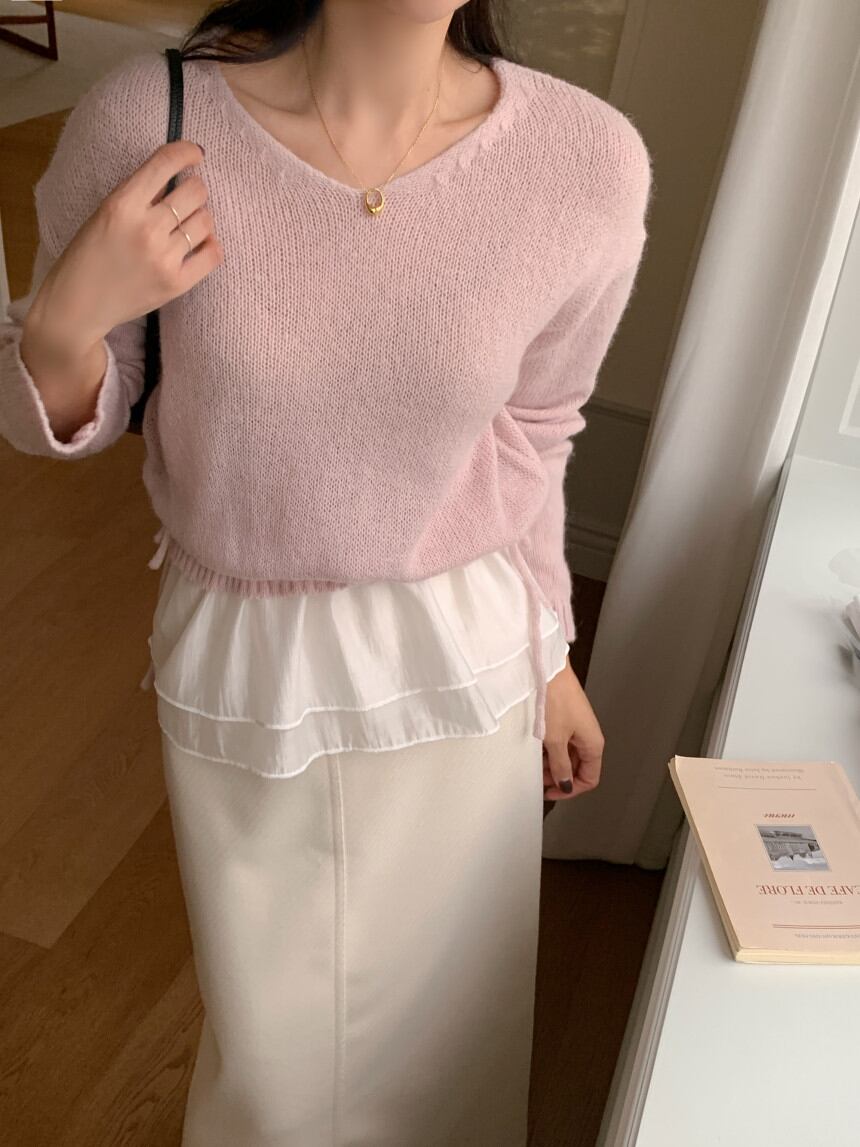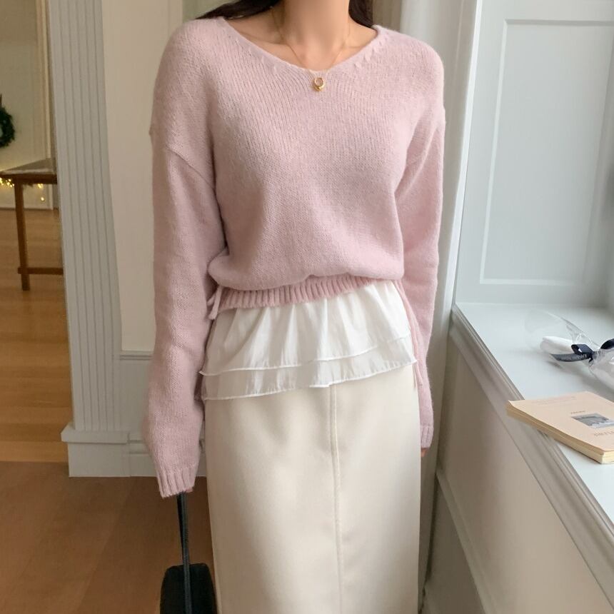 今季マストバイ INS 風 スウィート デザイン V ネック パネルデザイン ニット