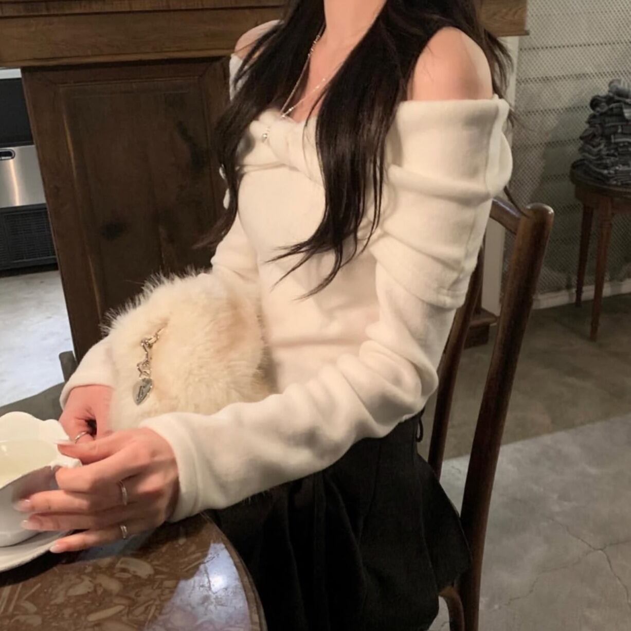 今季マストバイ INS 風 スウィート デザイン ショルダーオープン ニット トップス