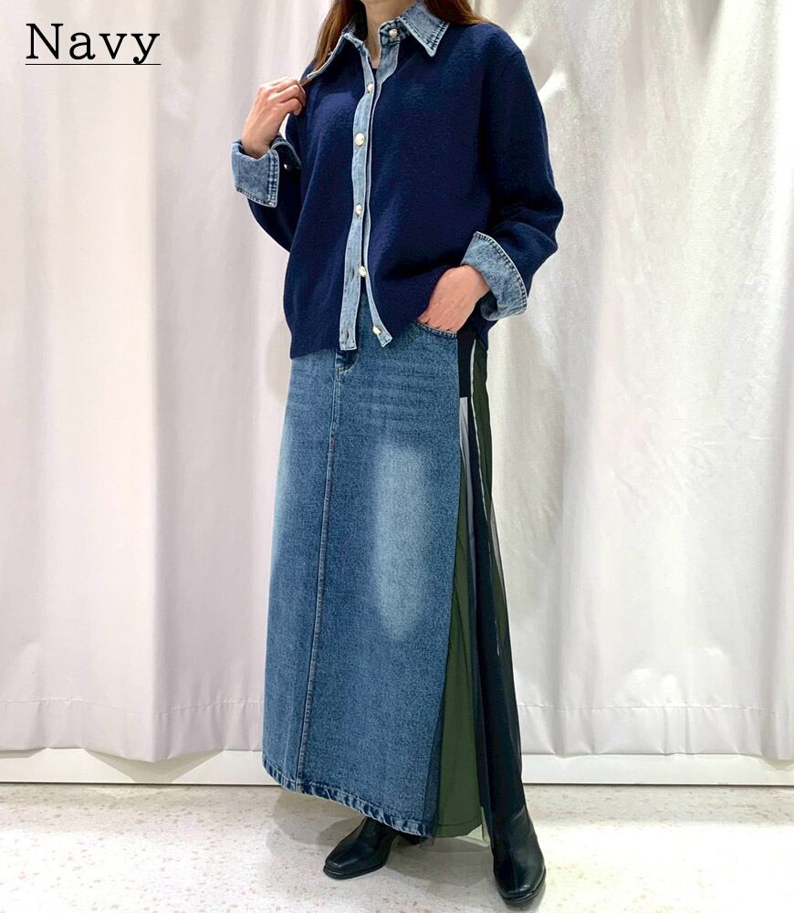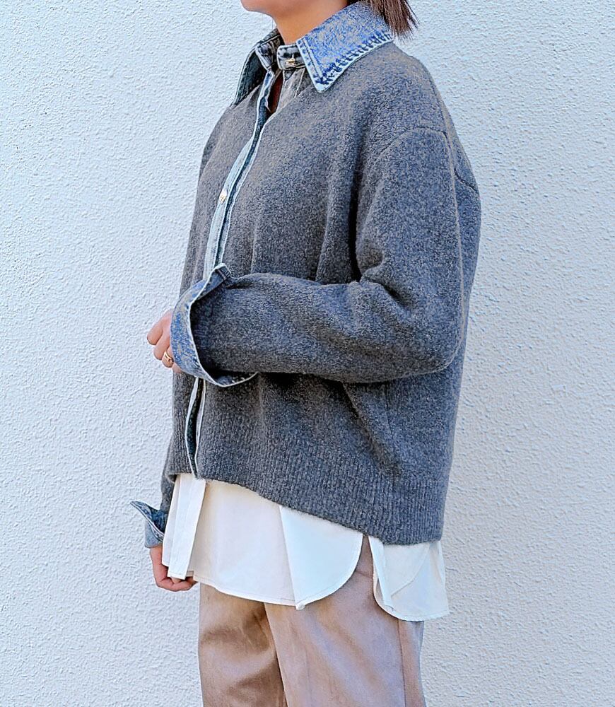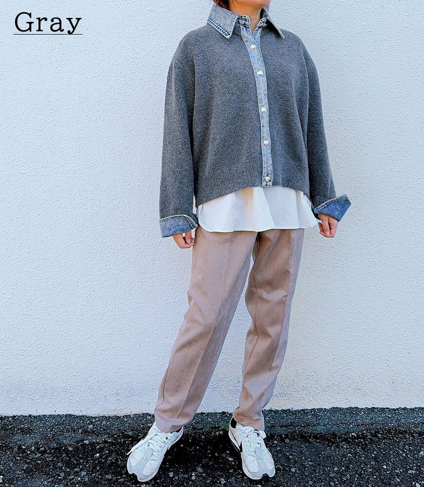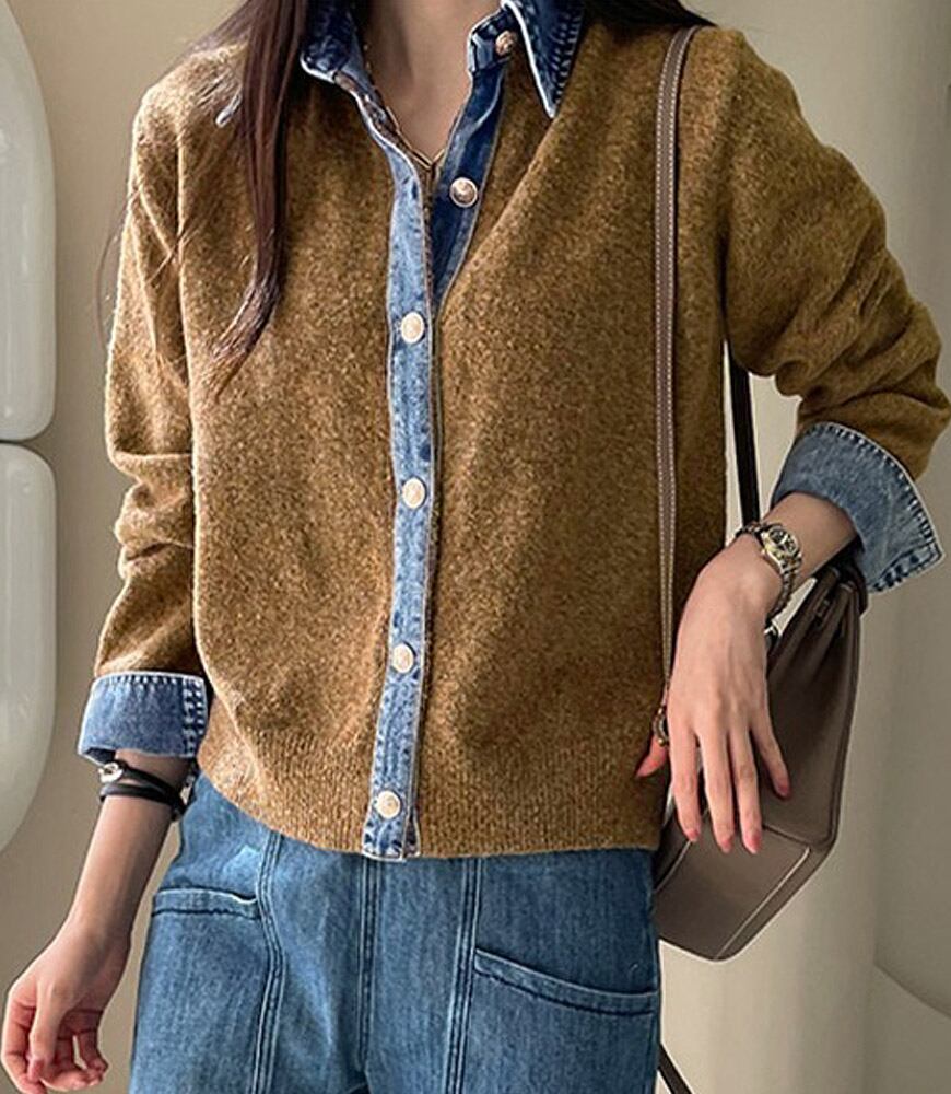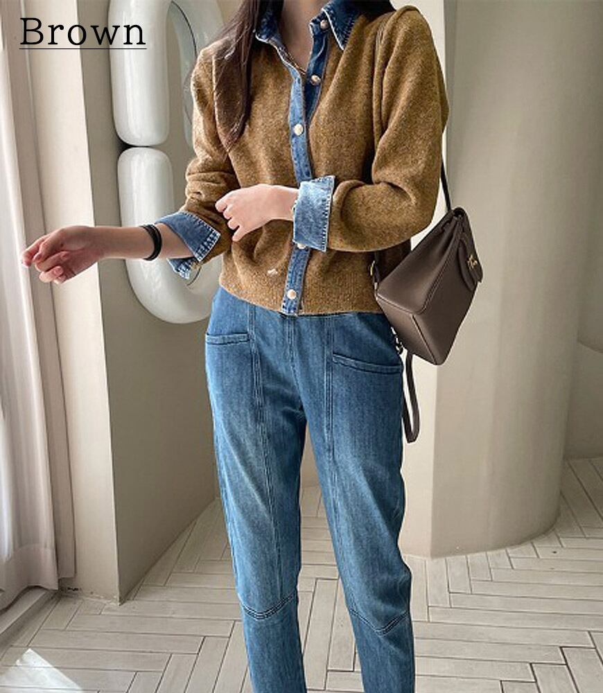 【2025新作】デニム襟ボタンニットカーデ★衣料15502