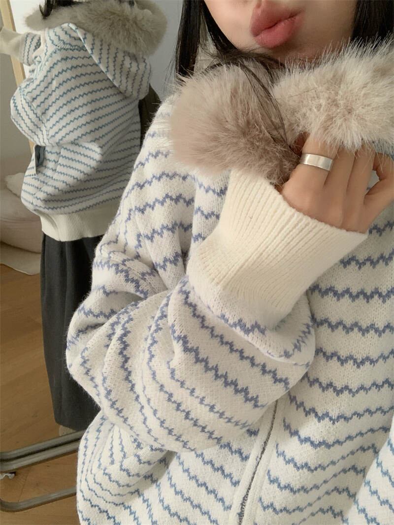 今季マストバイ 気質 おしゃれ 可愛い ファーカラー ニット カーディガン トップス