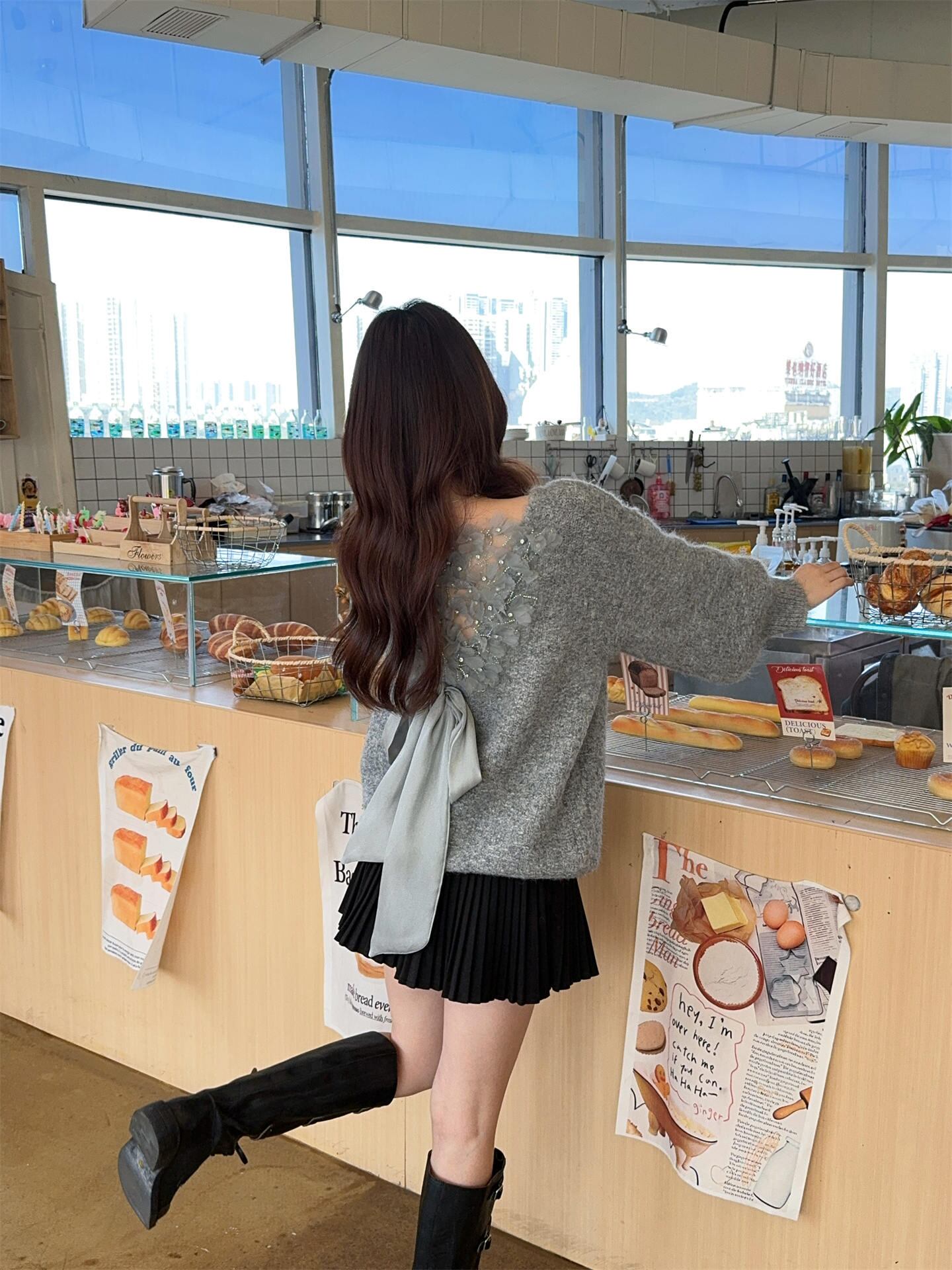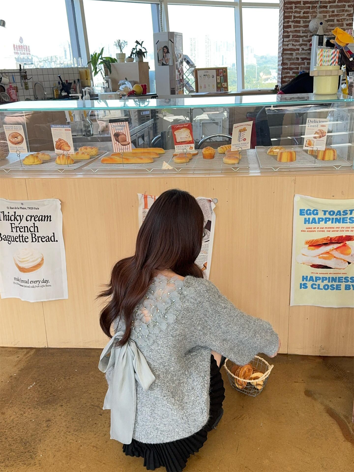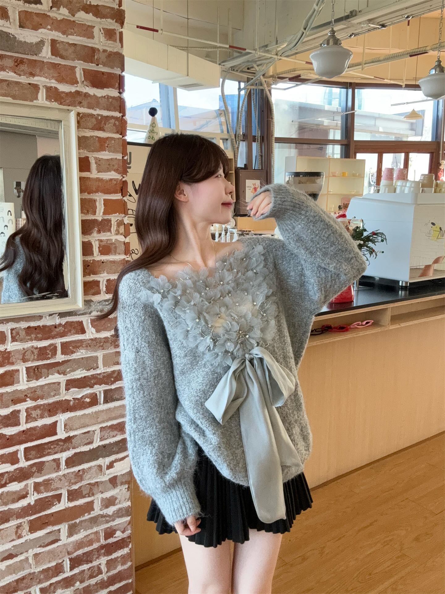 今季マストバイ 気質 可愛い アトモスフィア レース ニット リボン トップス