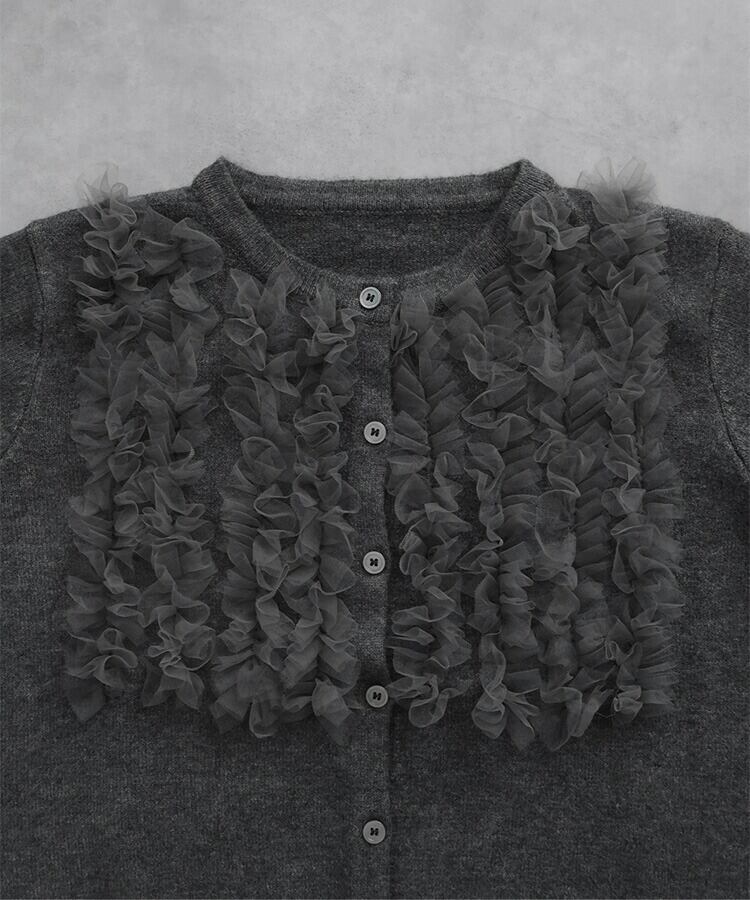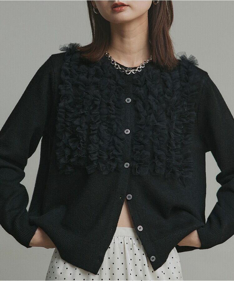 今季マストバイ 気質 おしゃれ ニット ネットレースフリル カーディガン