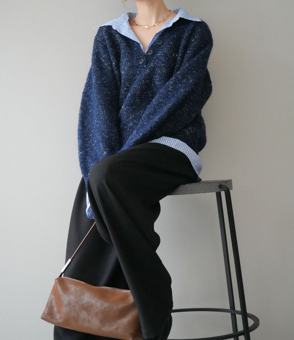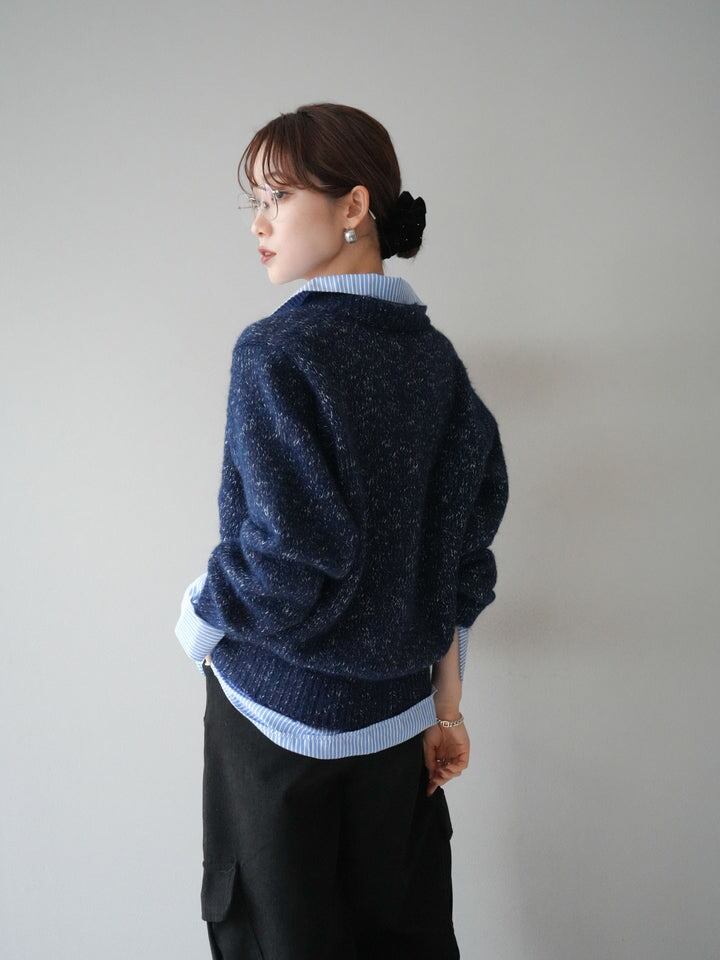 今季マストバイ 気質 おしゃれ 偽2枚 ストライプクロス ニットセーター