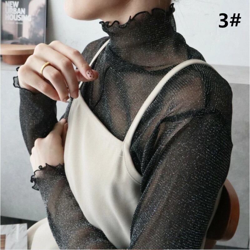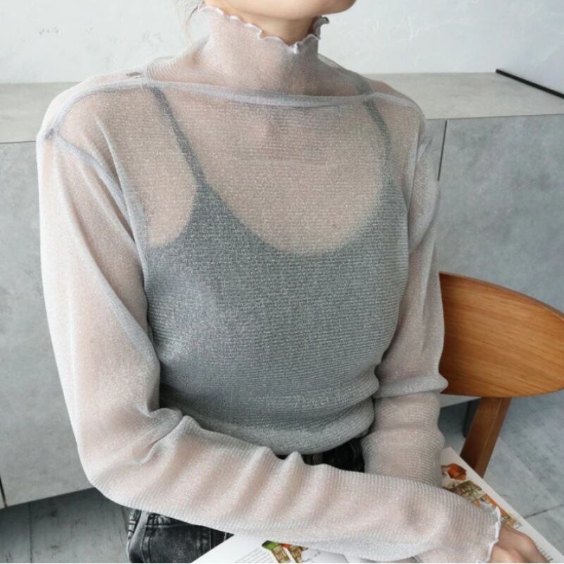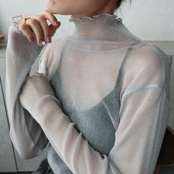 シアートップス 長袖 ハイネック シアーTシャツ 薄手 インナー トップス 大人可愛い
