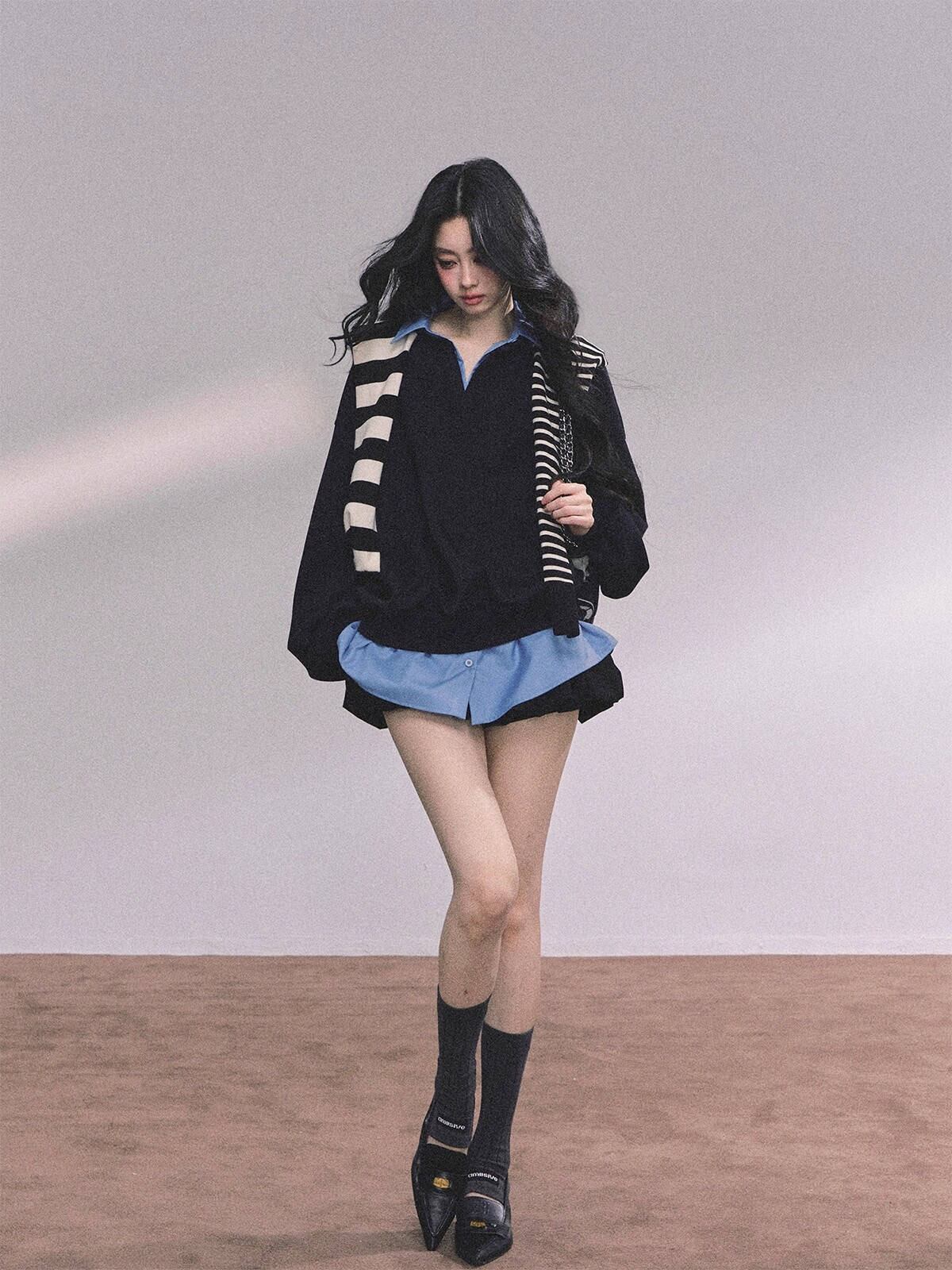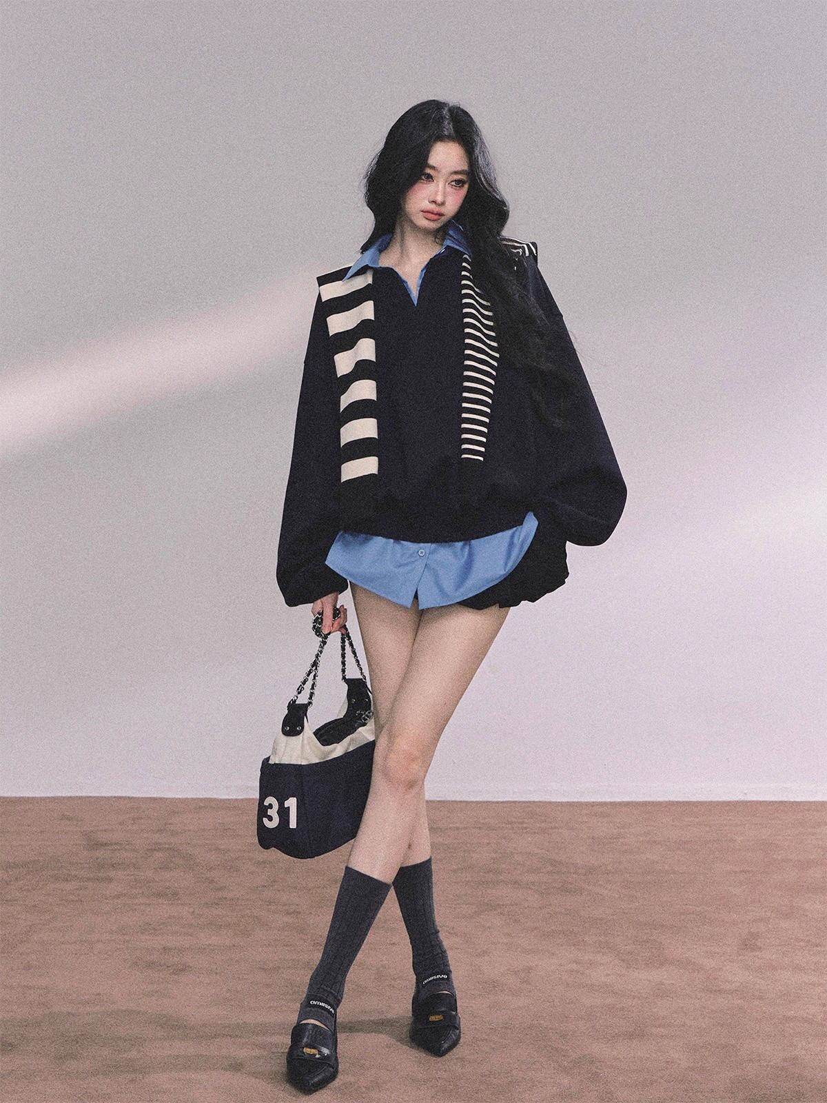 今季マストバイ 気質 おしゃれ 厚手 ニット パーカー フェイクレイヤー トップス