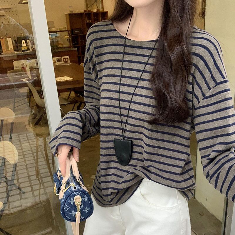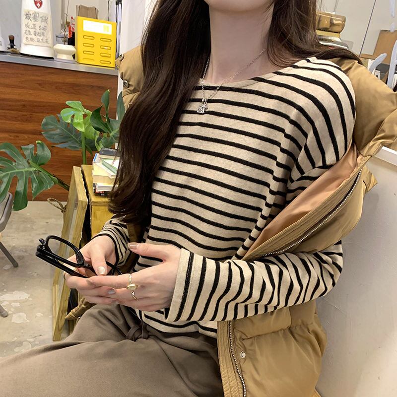 今季マストバイ 気質 おしゃれ ストライプ柄 ストライプ インナー シャツ トップス
