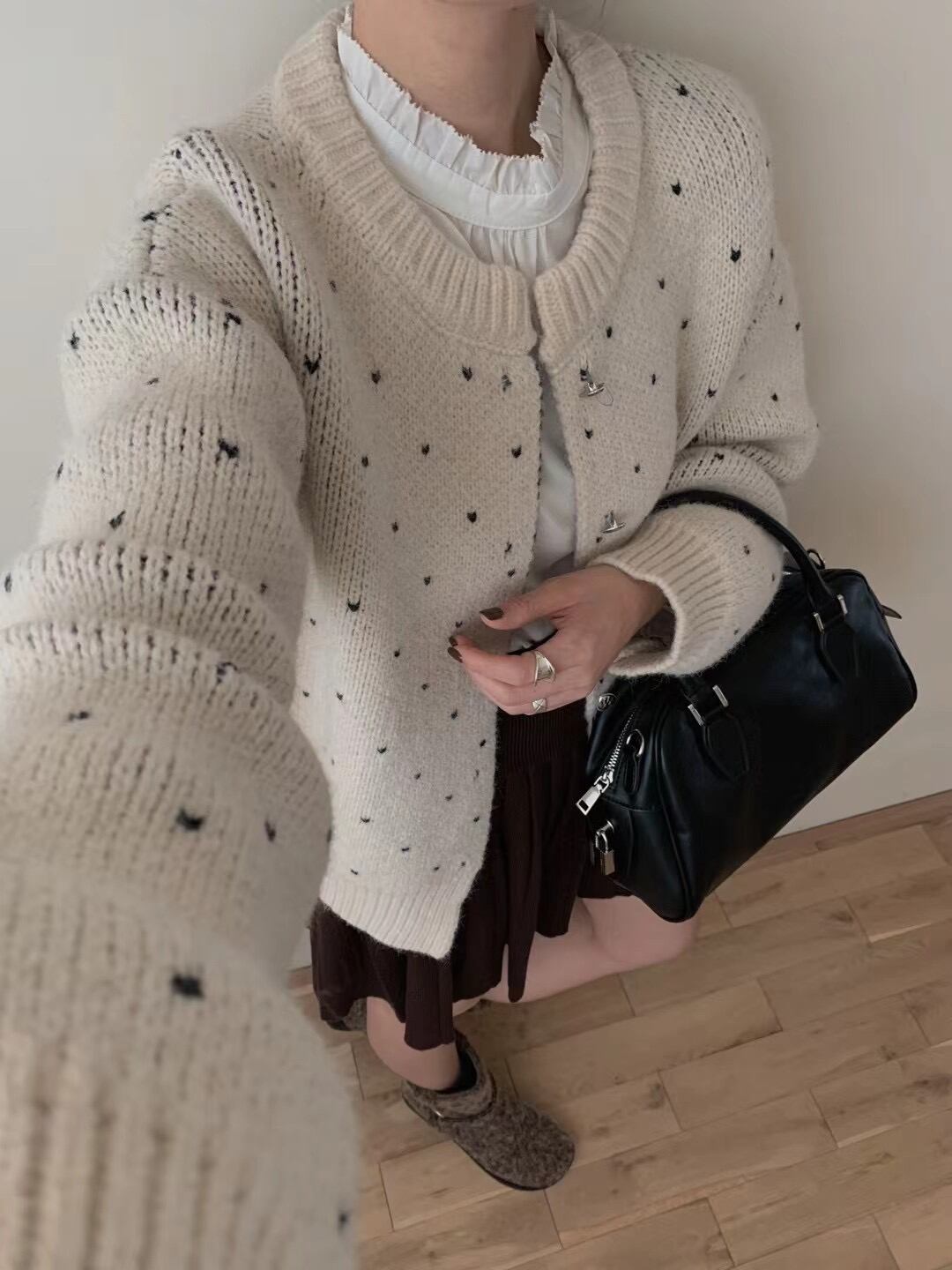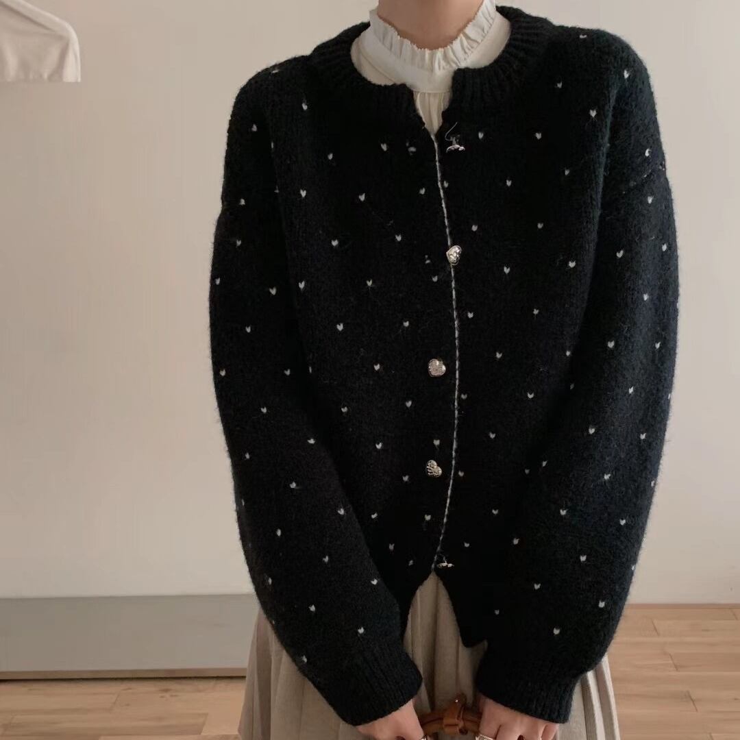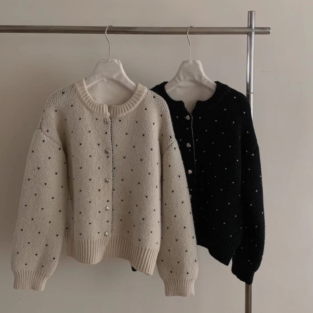 今季マストバイ 気質 おしゃれ 高級感 厚手 長袖 水玉柄 ニット カーディガン