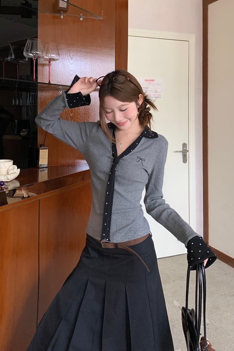 今季マストバイ 気質 おしゃれ レディース ドット柄 ポロカラー T シャツ