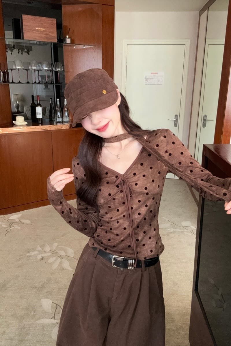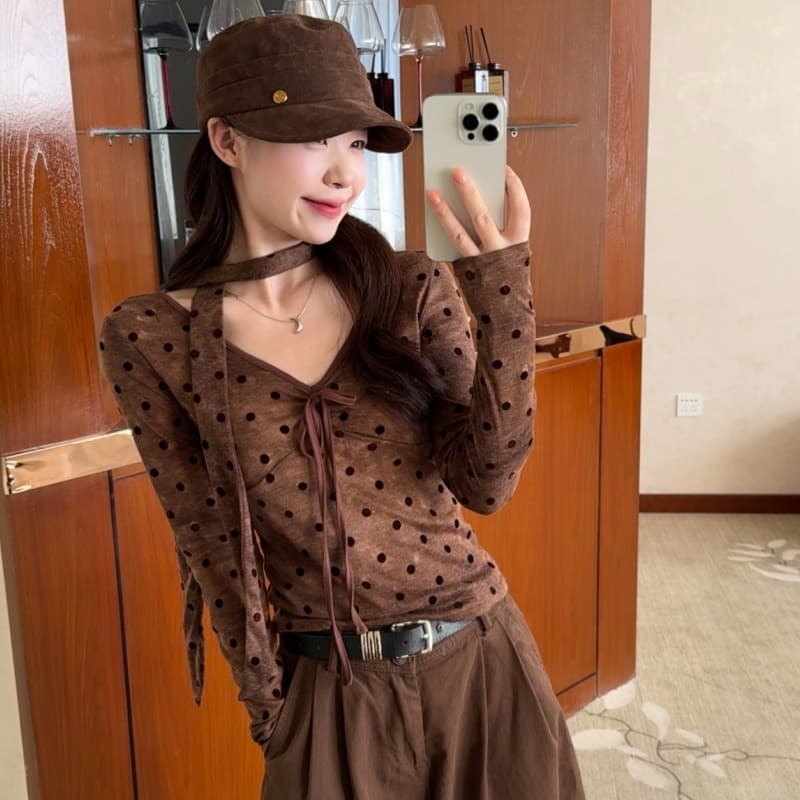 今季マストバイ 気質 おしゃれ レディース vネック ドット柄 T シャツ