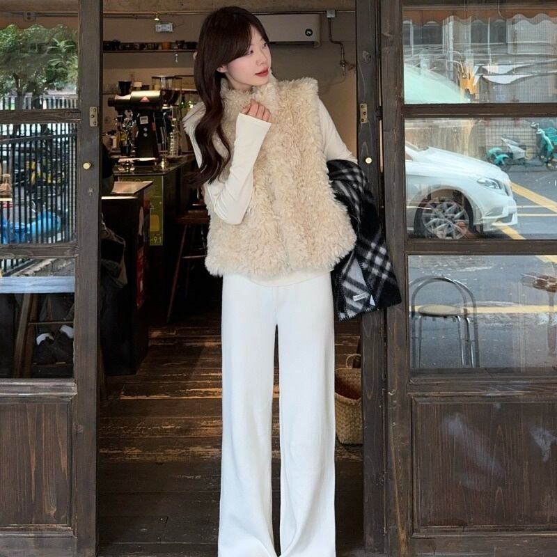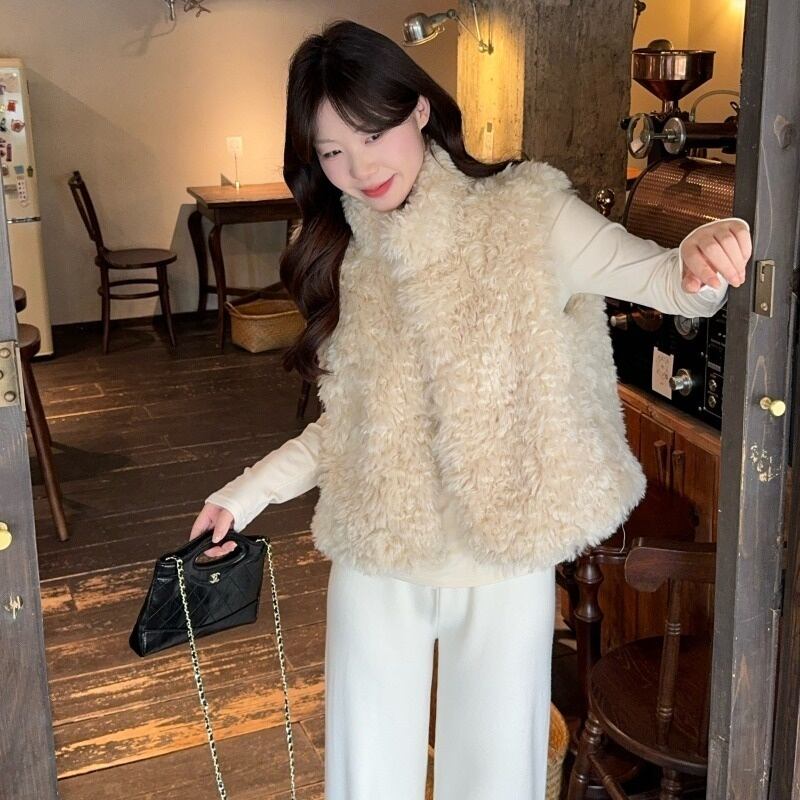 今季マストバイ 気質 レディースファー スタンド ベスト、ふわふわ 着痩せ トップスセット