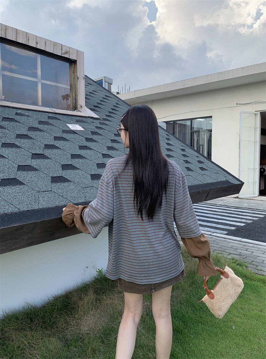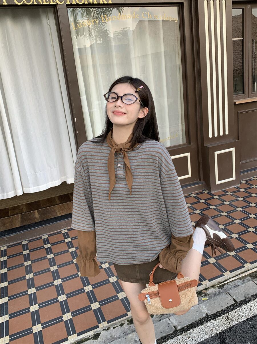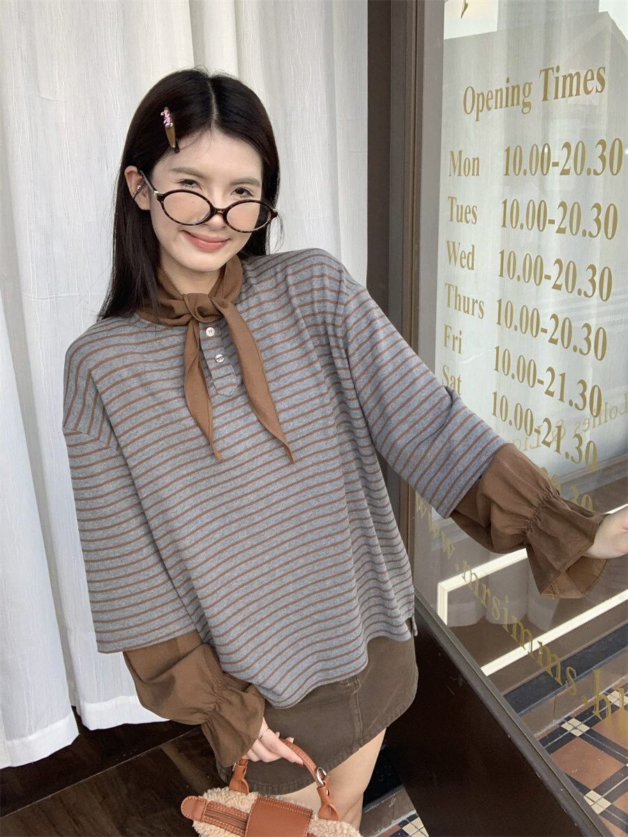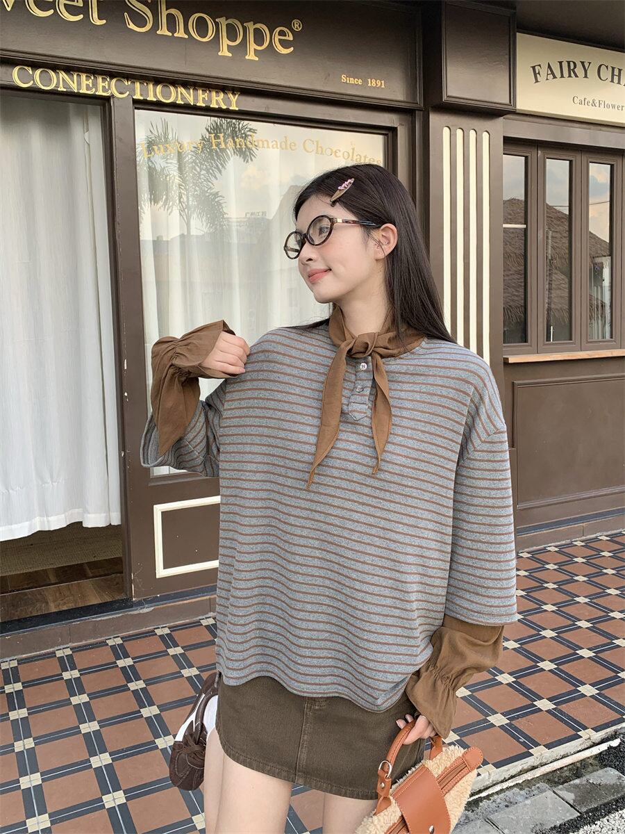 今季マストバイ 気質 おしゃれ デザイン ストライプ フェイクツーピース T シャツ