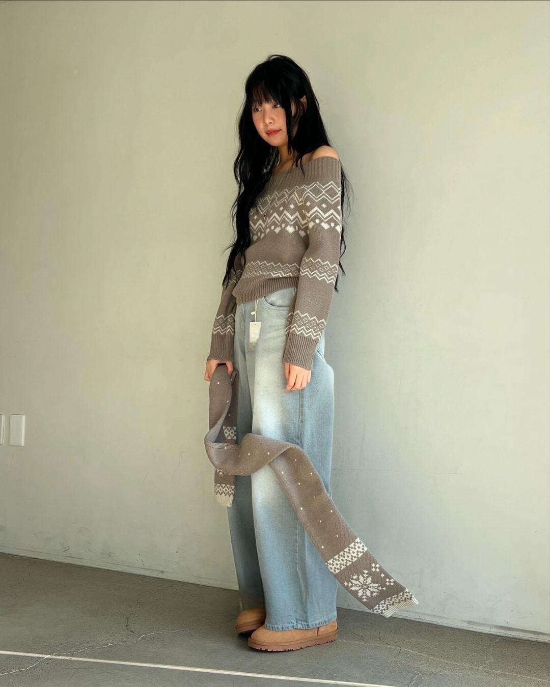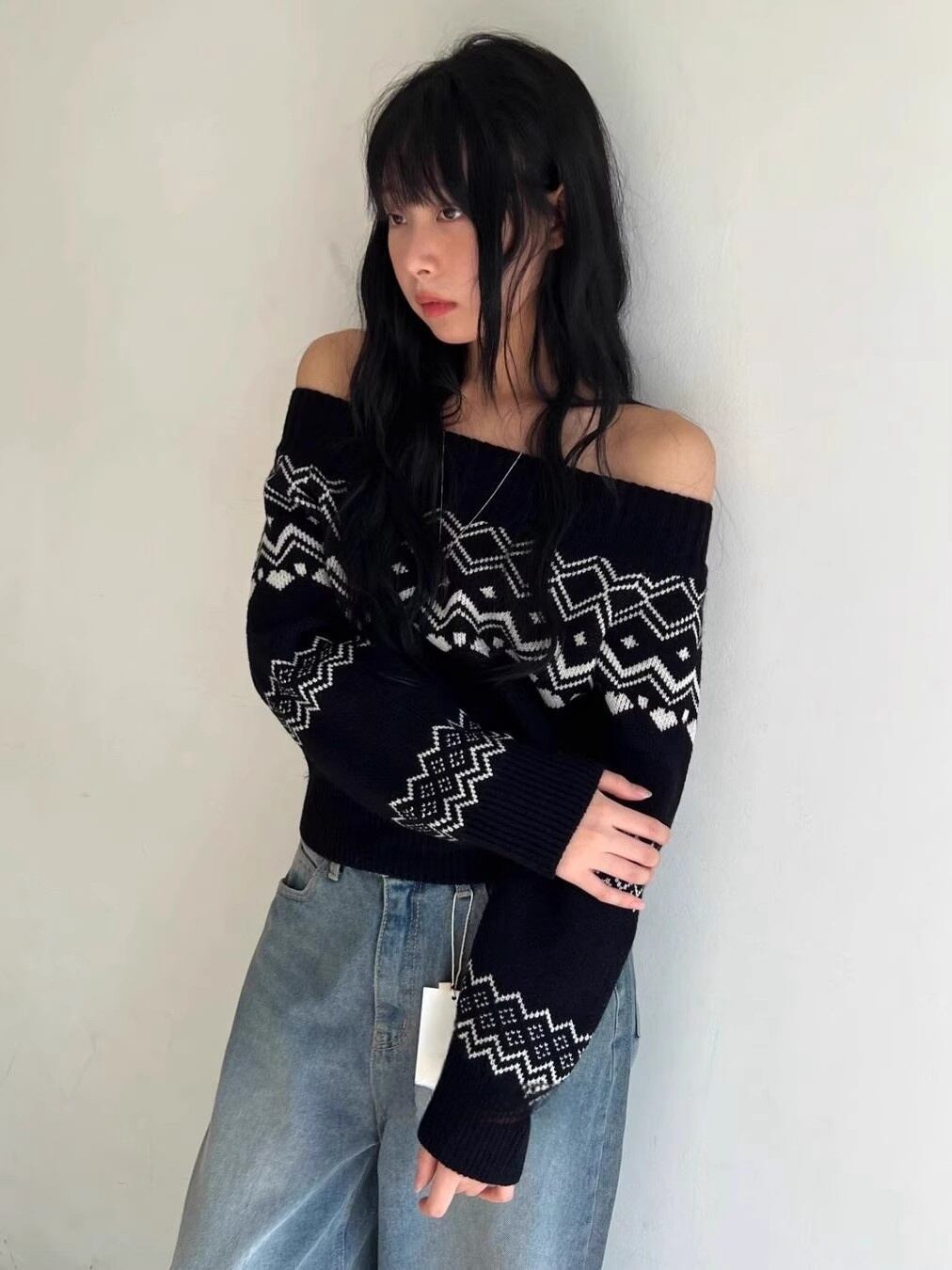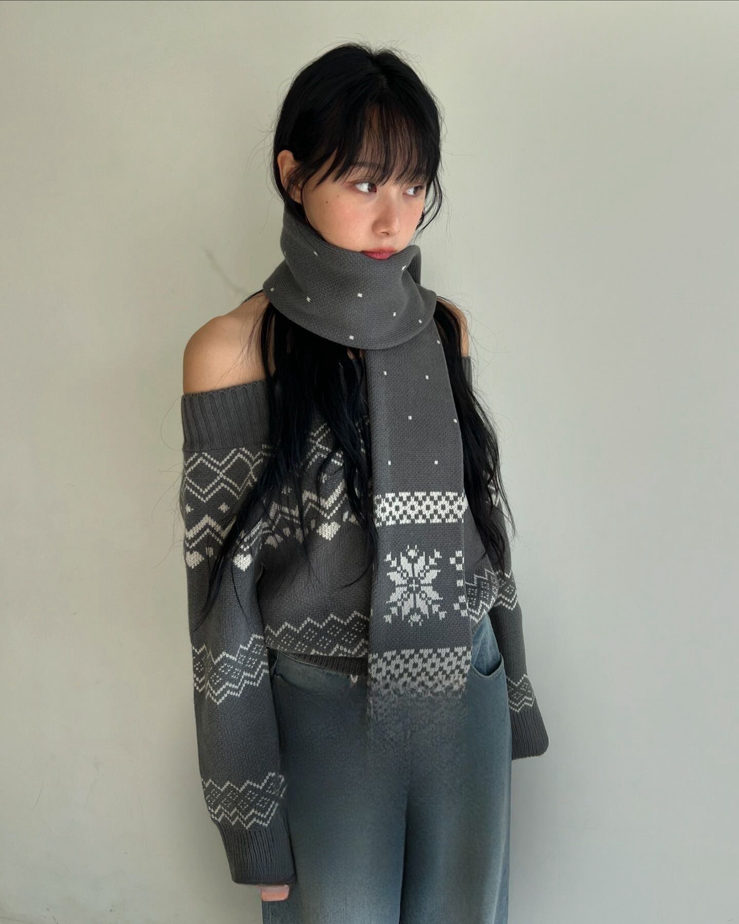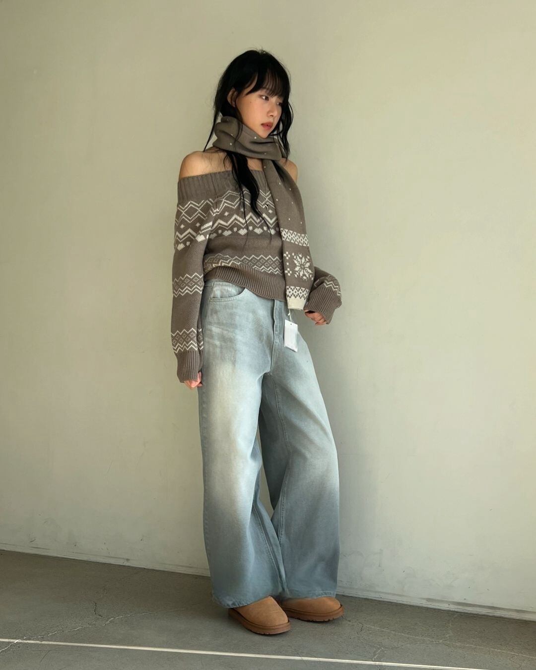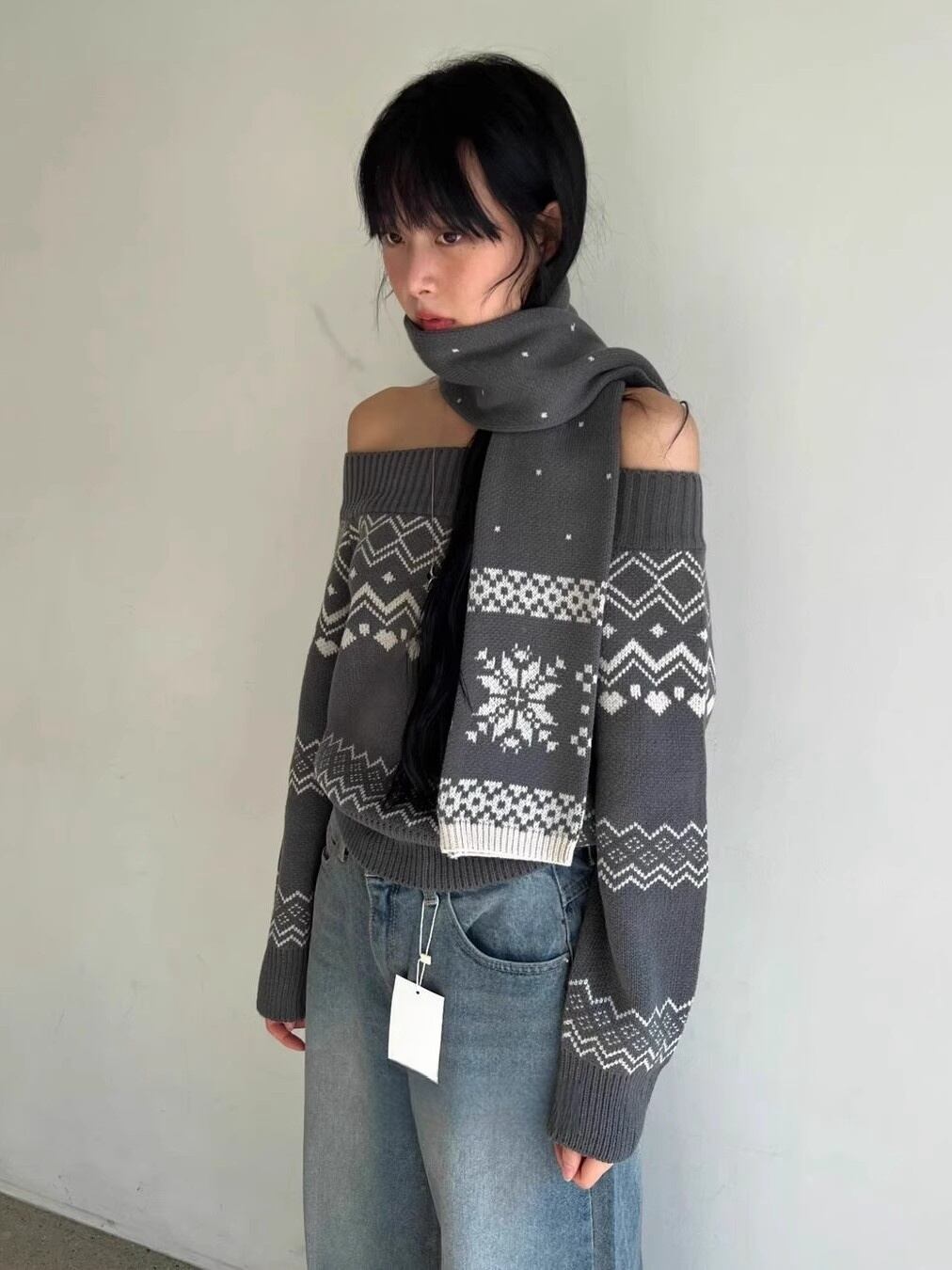 今季マストバイ 気質 おしゃれ 厚手 オフショルダー セーター スカーフ付き