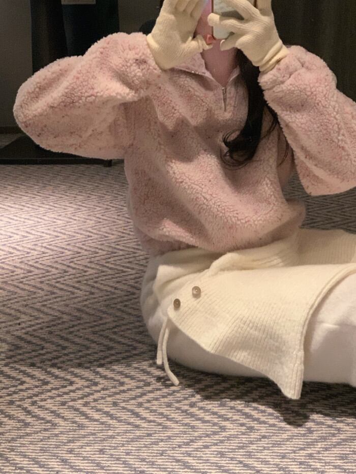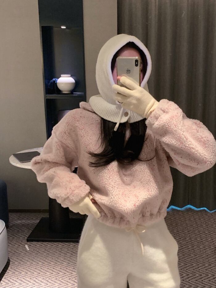 今季マストバイ 気質 おしゃれ 厚手 ピンク ラムスキン スウェット パーカー