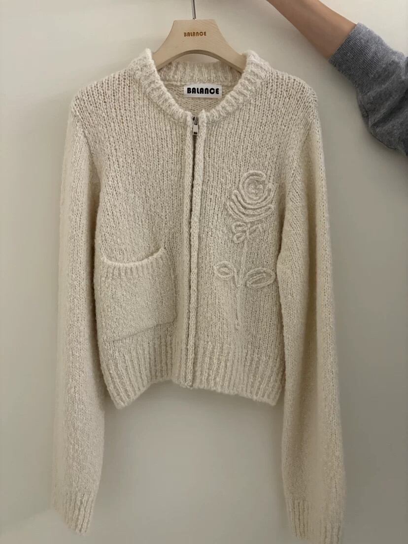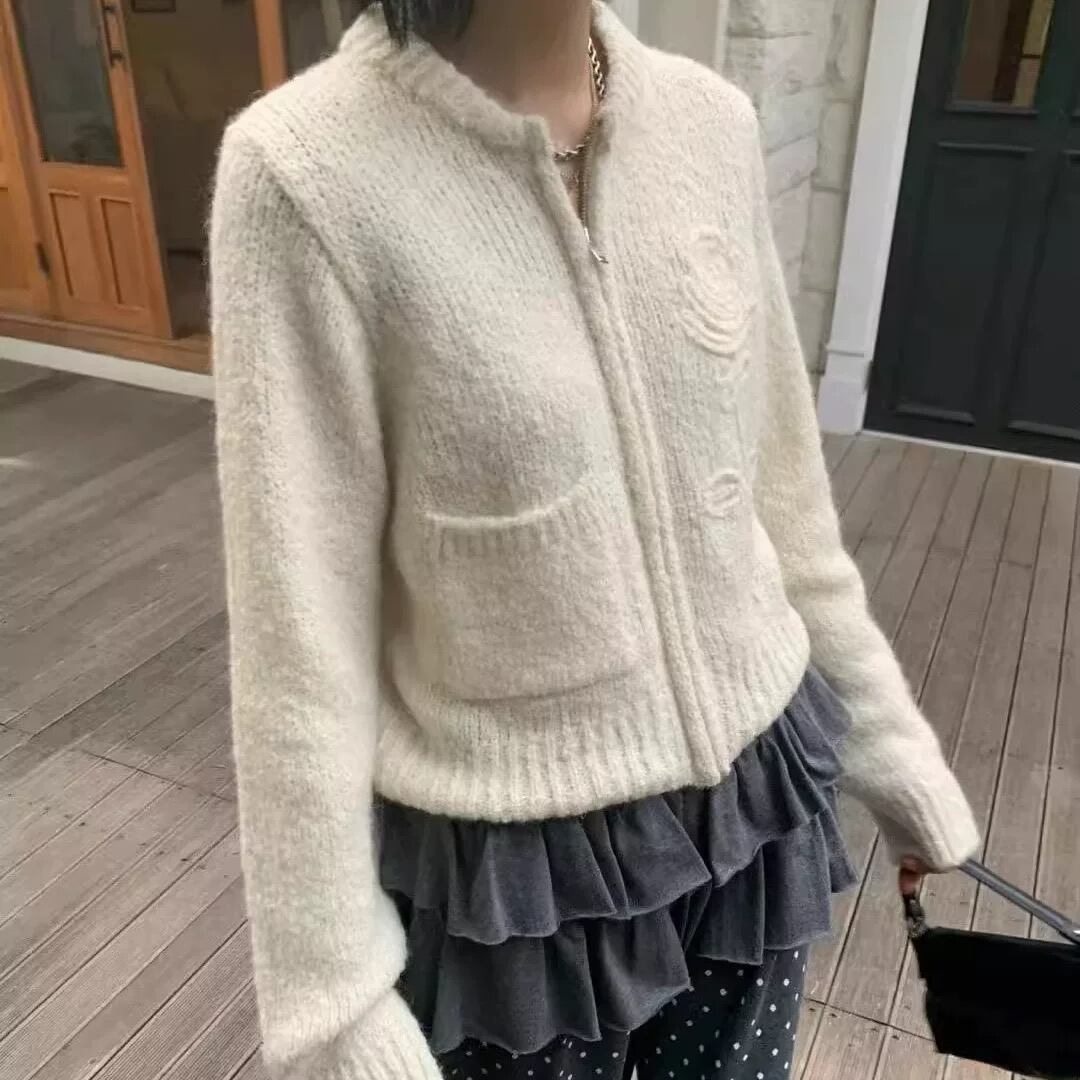 今季マストバイ 気質 おしゃれ ジッパー 韓国製 カラーレス ニット カーディガン