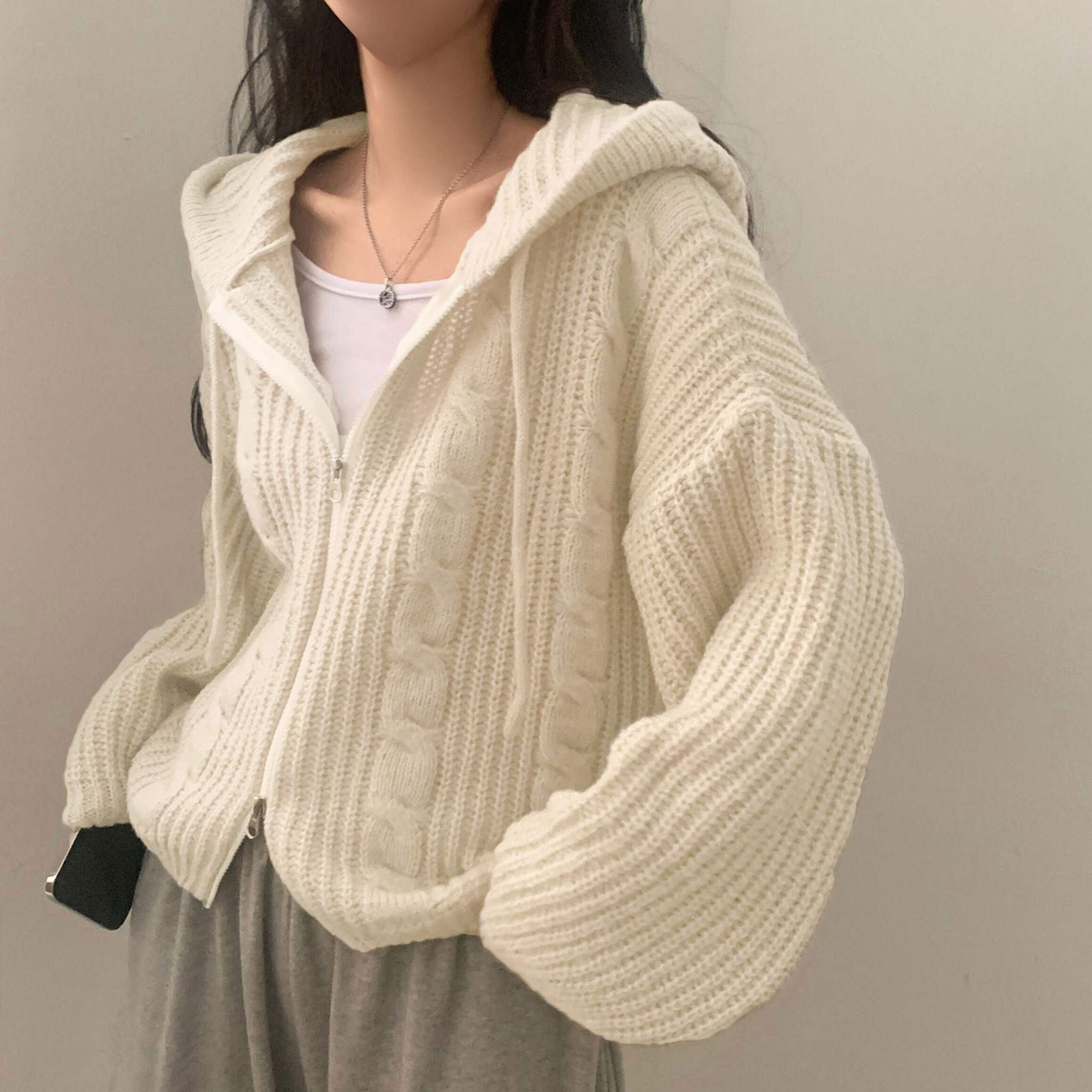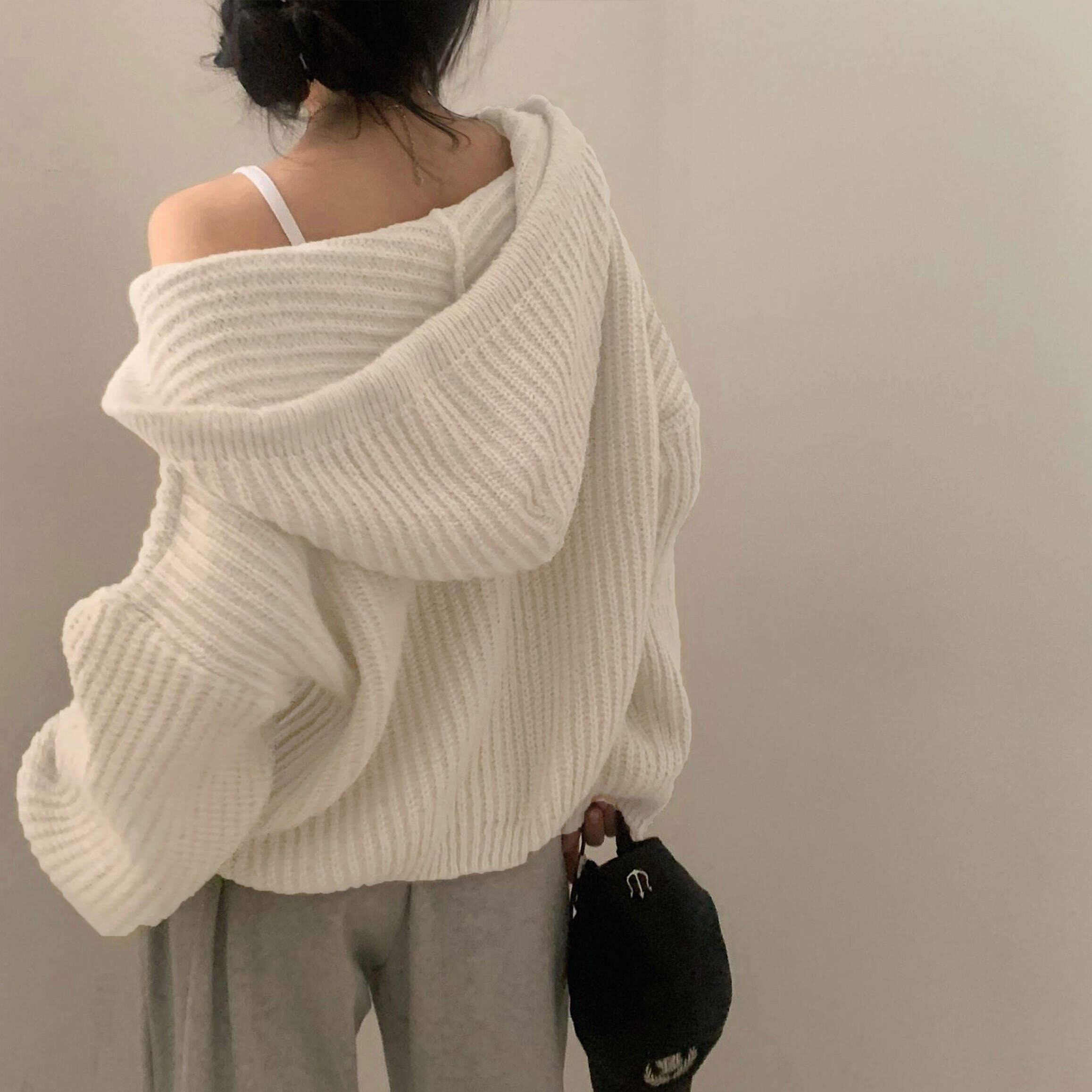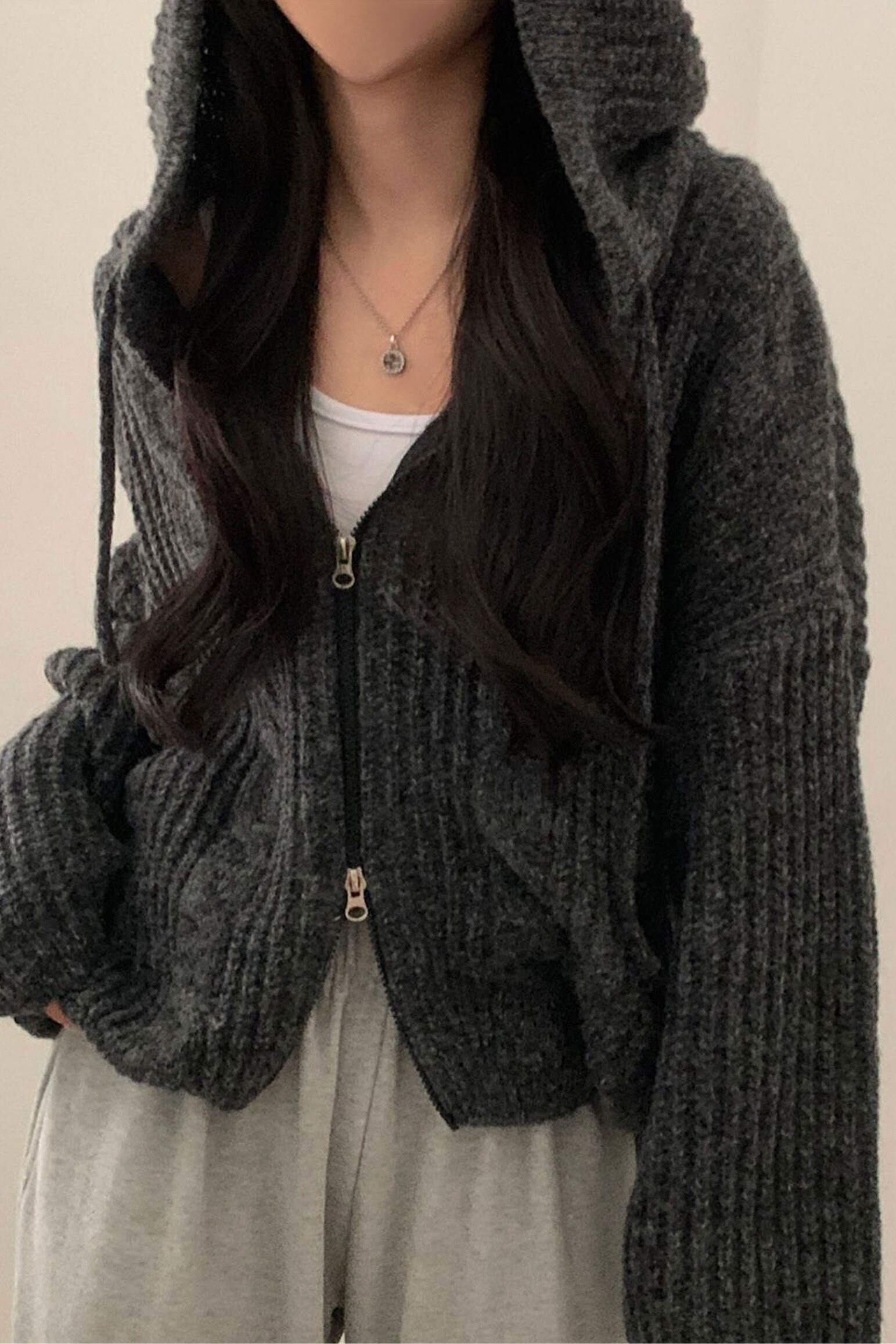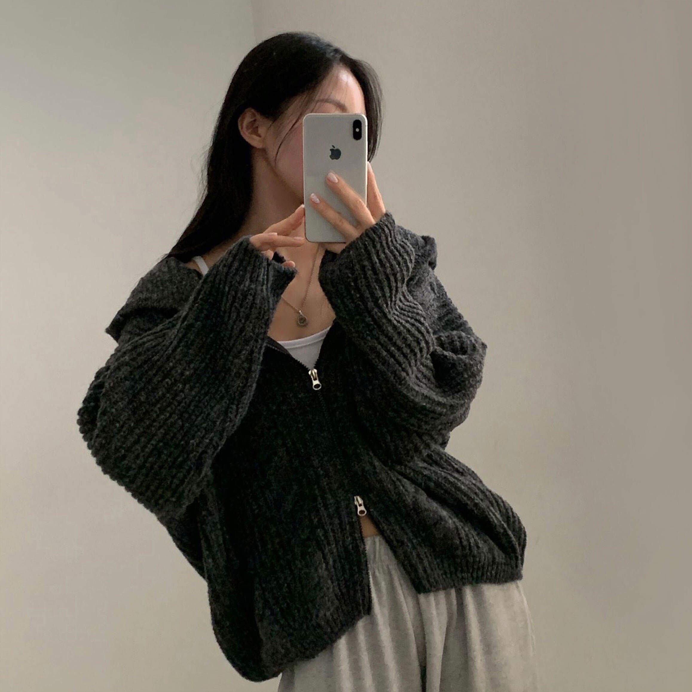 今季マストバイ 気質 おしゃれ 厚手 ニット ダブルジッパー フード カーディガン トップス