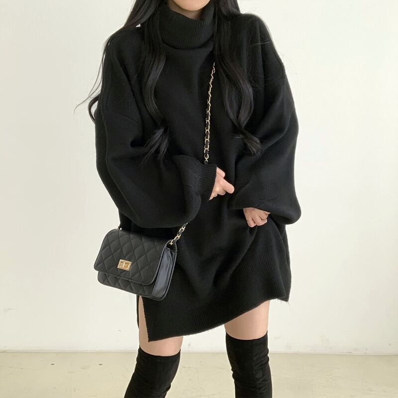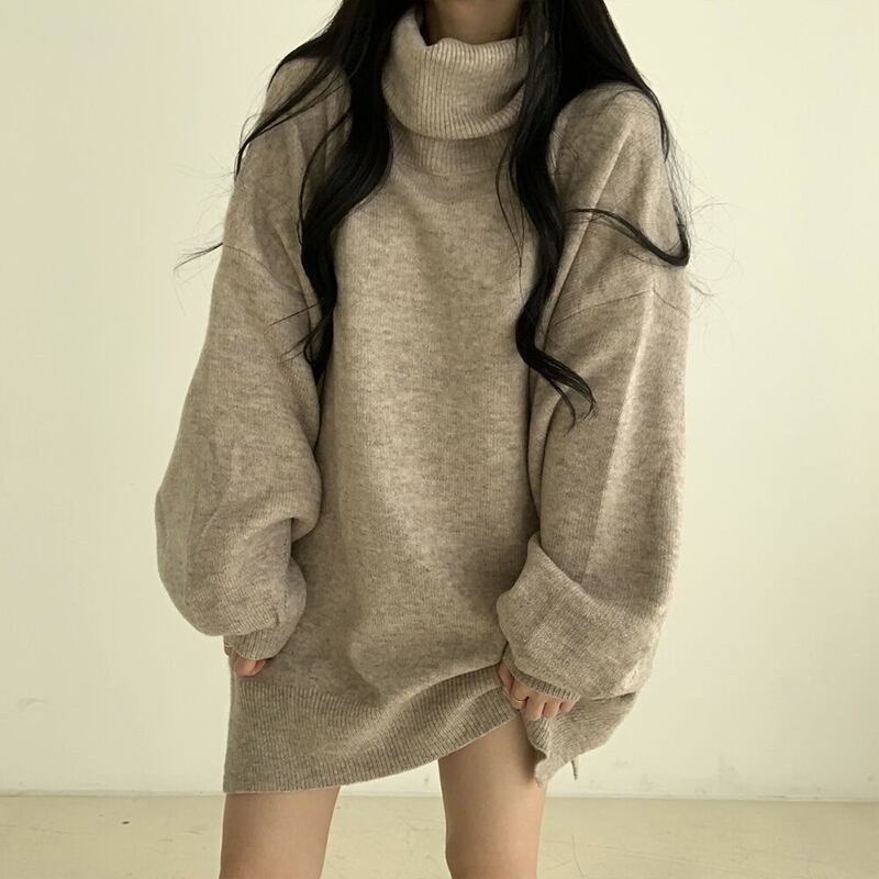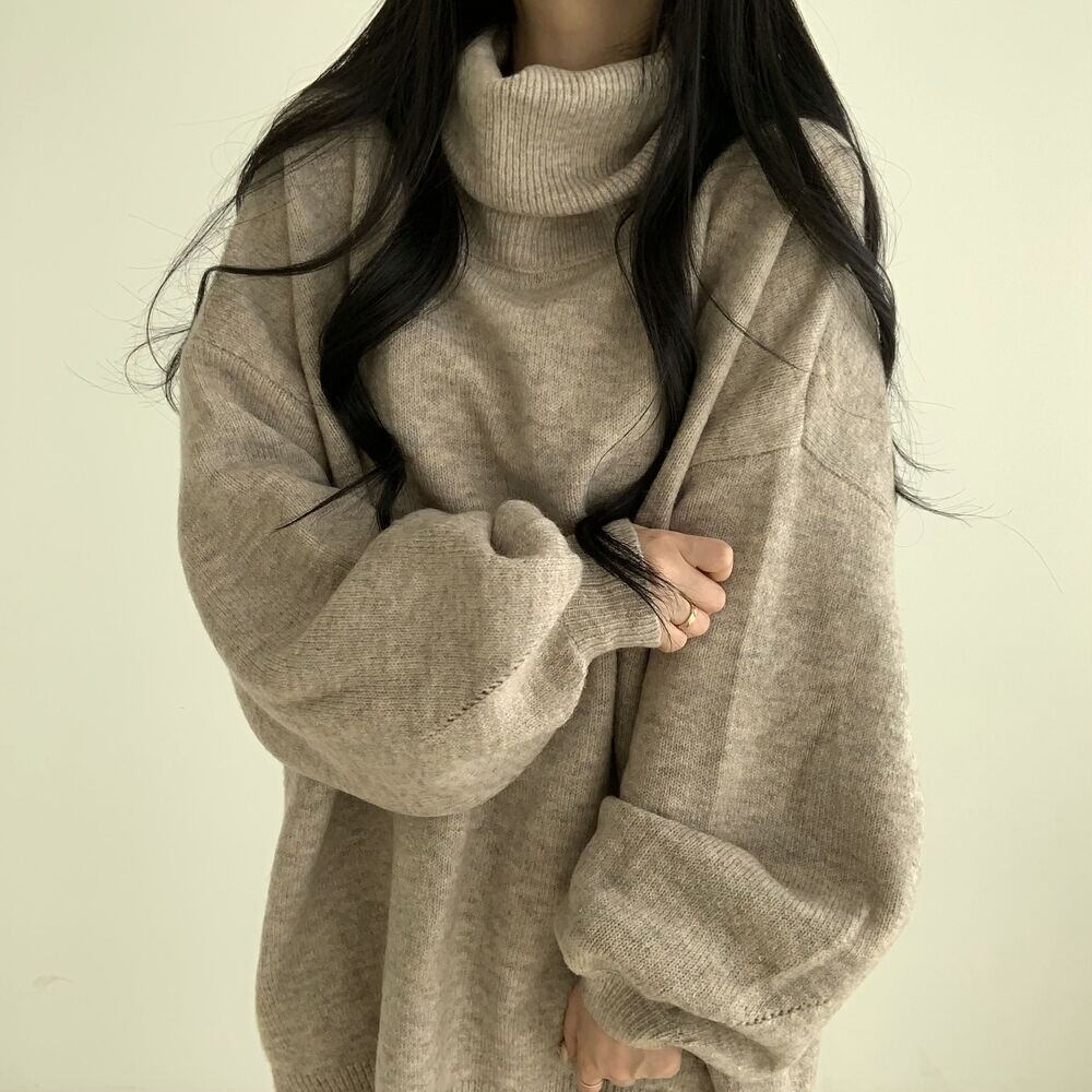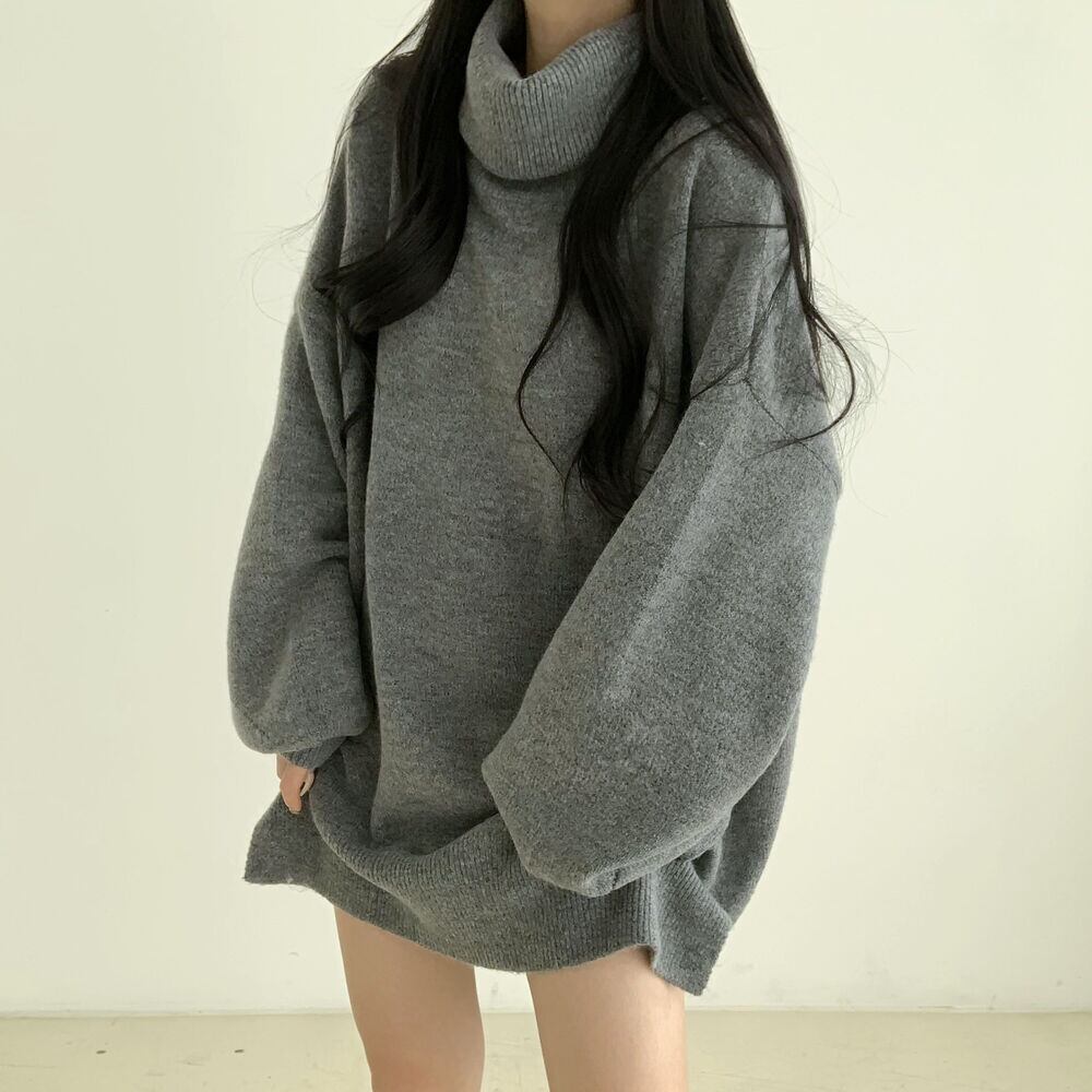 今季マストバイ 気質 おしゃれ ハイネック パフスリーブ ニット トップス