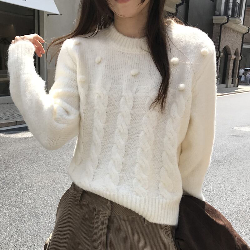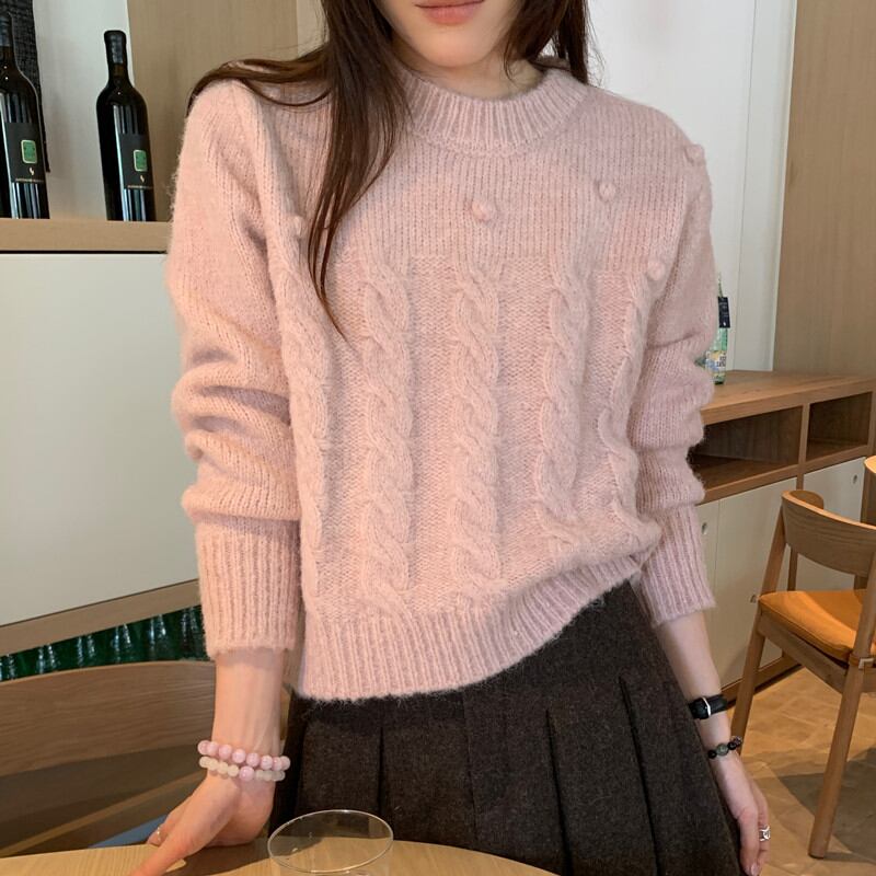 今季マストバイ 気質 おしゃれ 韓国 リブ編み ニット クルーネック セーター