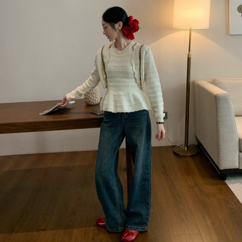 今季マストバイ 気質 おしゃれ 厚手 トップス フィッシュテールヘム ニット カーディガン