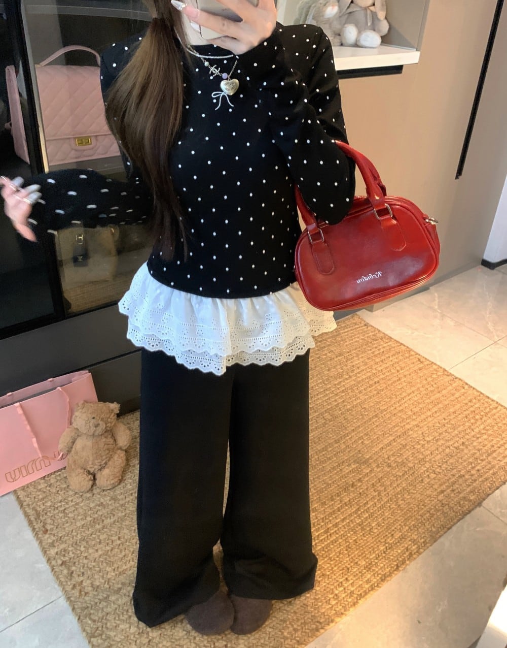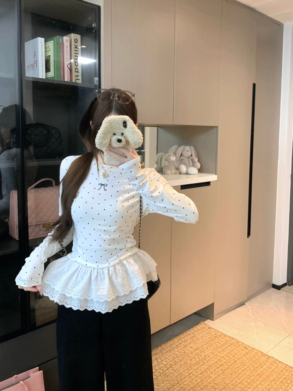 今季マストバイ 気質 おしゃれ 厚手 ドット レース ロングスリーブ インナー