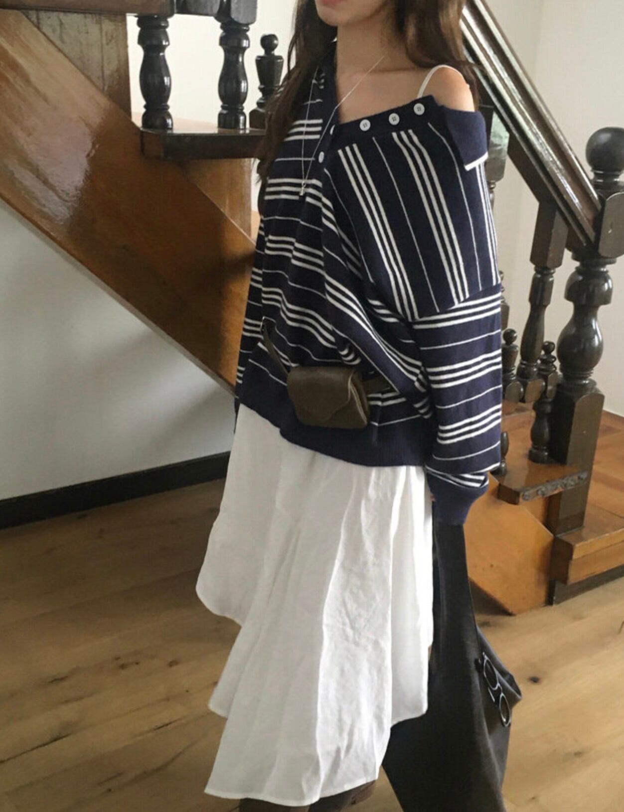 今季マストバイ 気質 おしゃれ 個性的 ポロカラー ニット ストライプ柄
