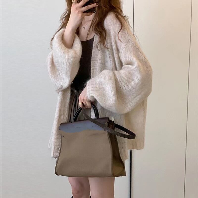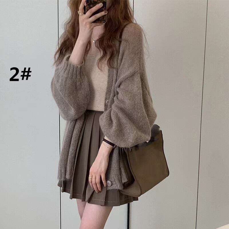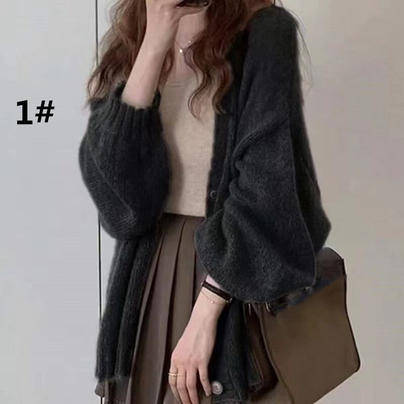 秋新作 カーディガン ランタンスリープ トップス レディース 長袖 アウター ニット 羽織 フェミニン