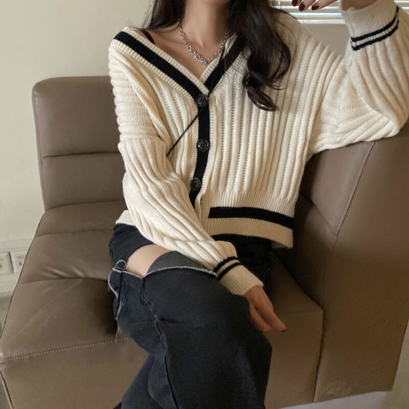秋新作 カーディガン トップス レディース 長袖 Vネック ニット 羽織 フェミニン カジュアル シンプル