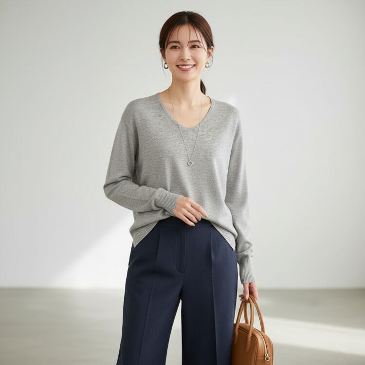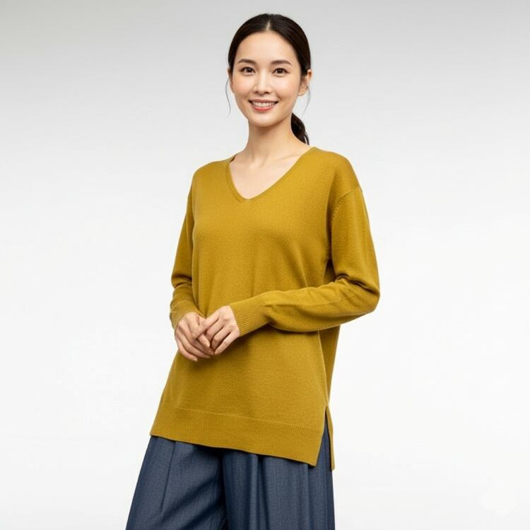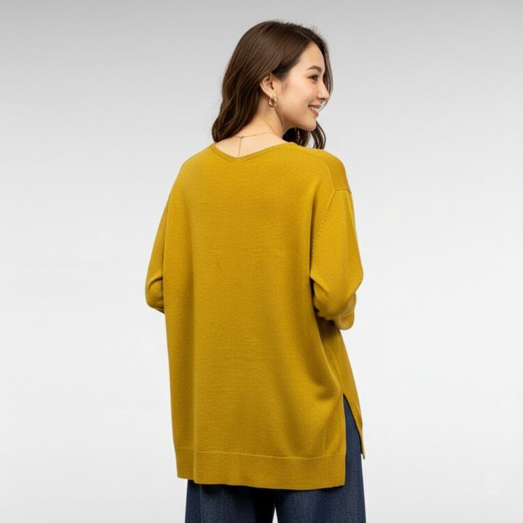 【冬物値下げ】前後Vネック アンゴラ混 薄手ハイゲージニット