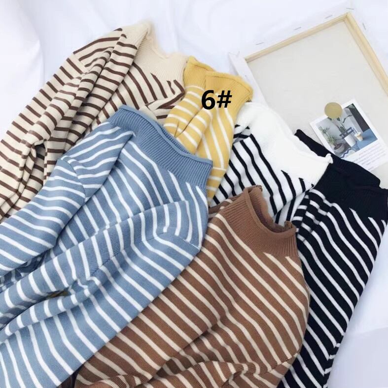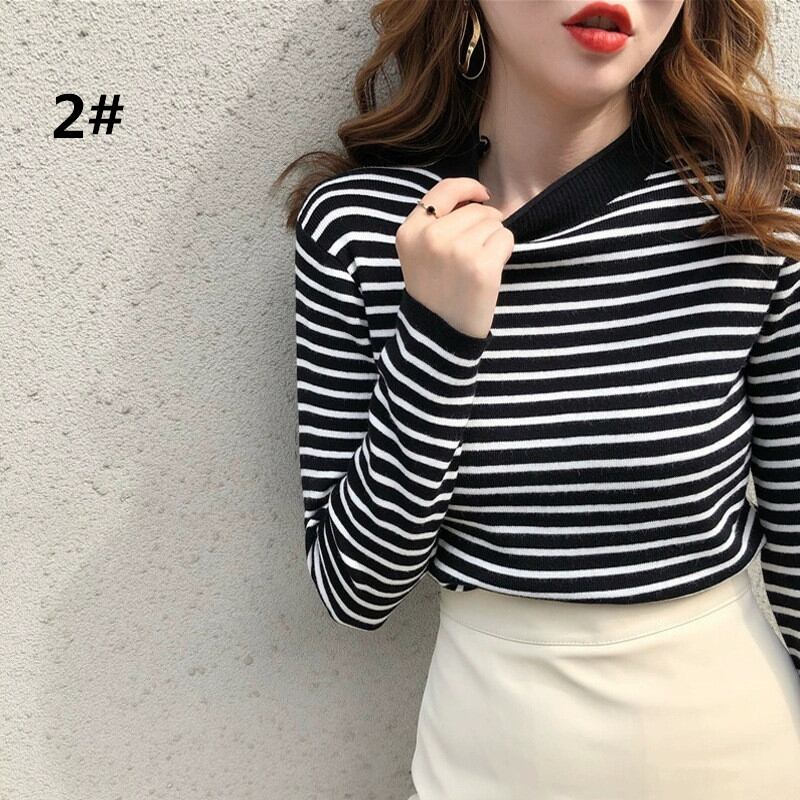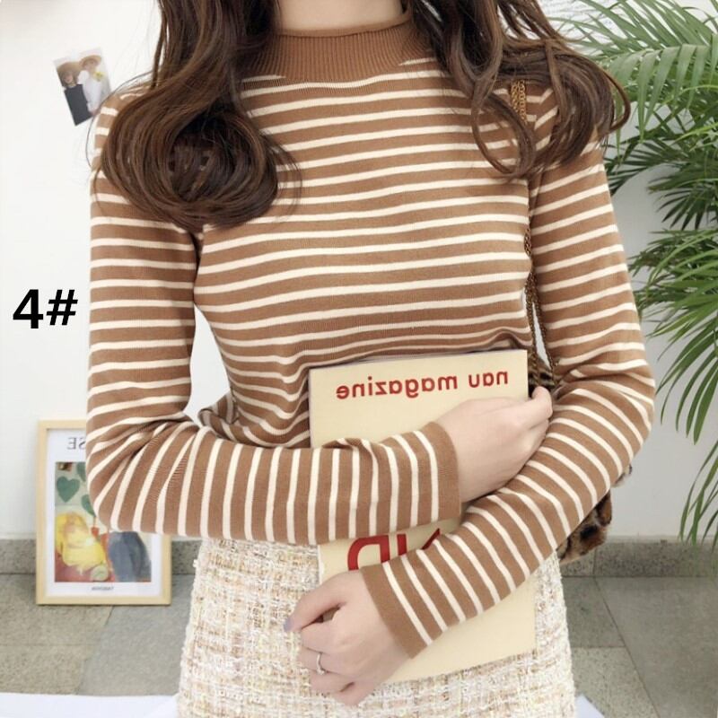 ニット トップス レディース セーター 長袖 プルオーバー ハイネック 秋冬 着回し ボーダー柄