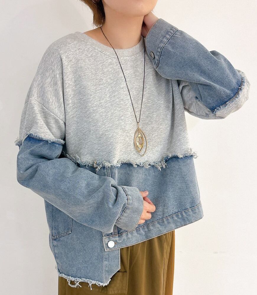 【2025新作】デニムxスエット切替プルオーバー★衣料038