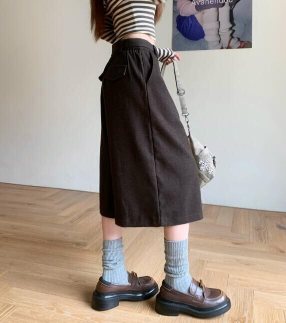 ボトムス ズボン パンツ ワイドパンツ ハイウェスト 七分丈