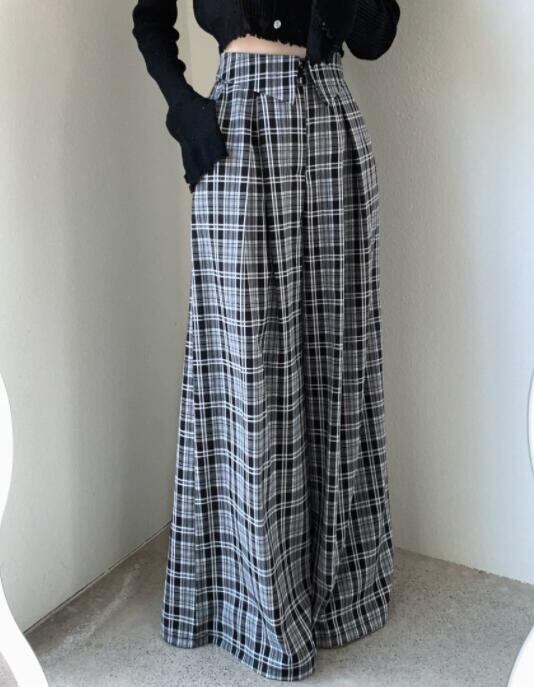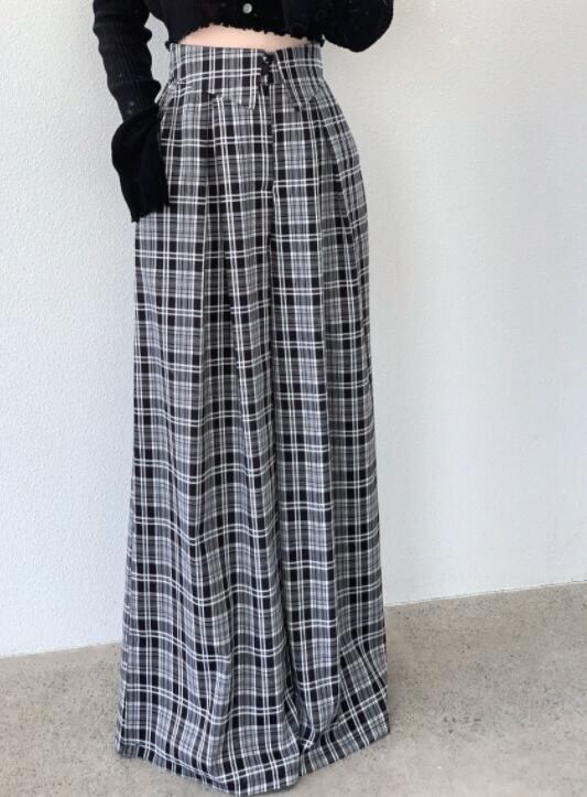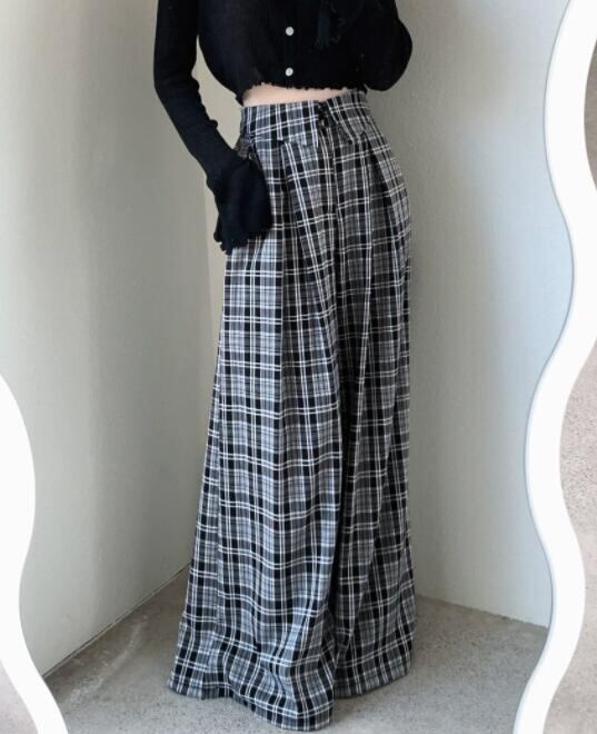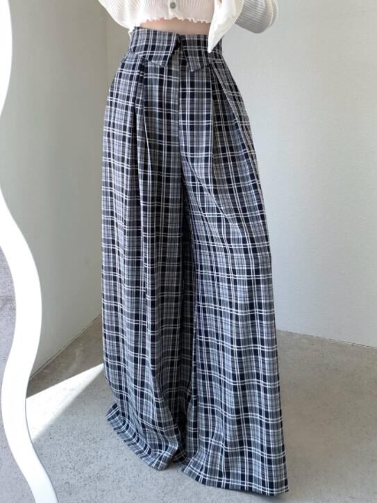 ズボン パンツ ワイドパンツ チェック柄 ハイウェスト レディースボトムス