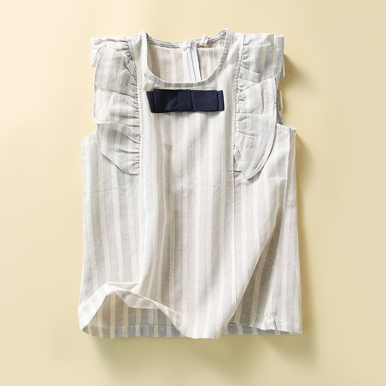 2022夏 超人気可愛い 3-9歳 リボン蝶結び 柔らかい 綿麻上着+ズボン セットアップ