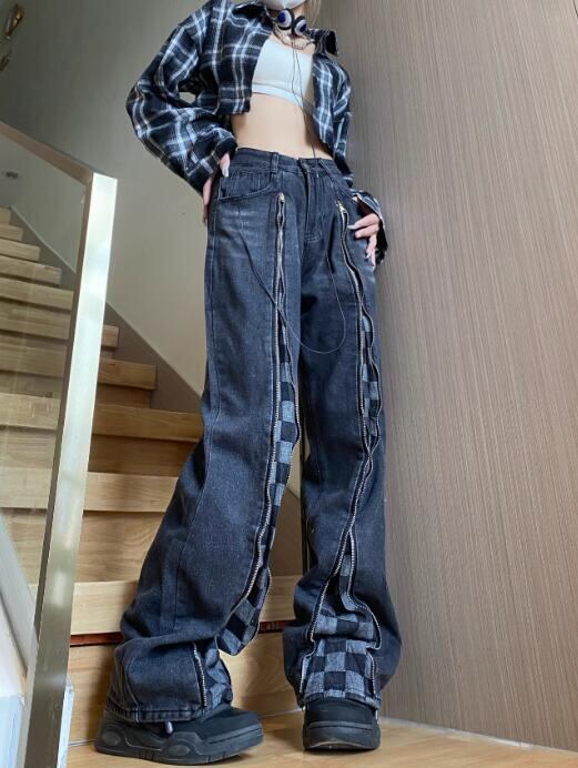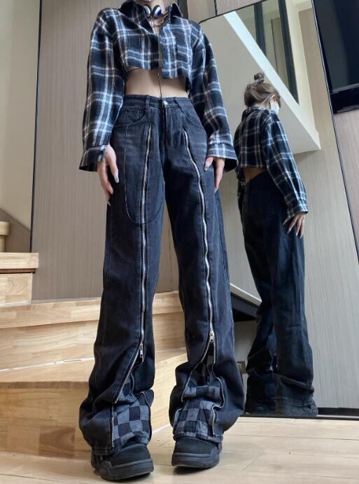 ファッション レディース ボトムス ジーンズ ズボン デニム ファスナー チェック