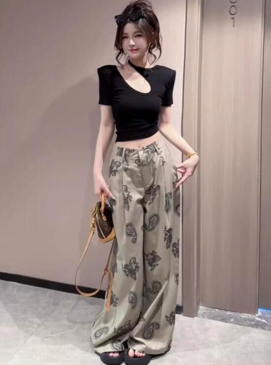ボトムス レディース ズボン パンツ ワイドパンツ スラックス プリント