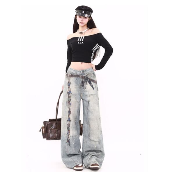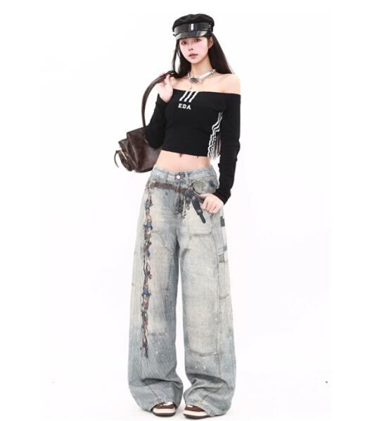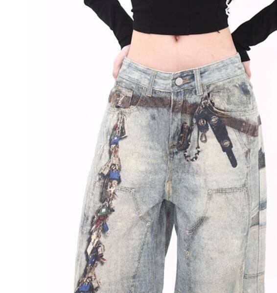 秋冬ボトムス ズボン パンツ ワイドパンツ デニム ジーンズ プリント