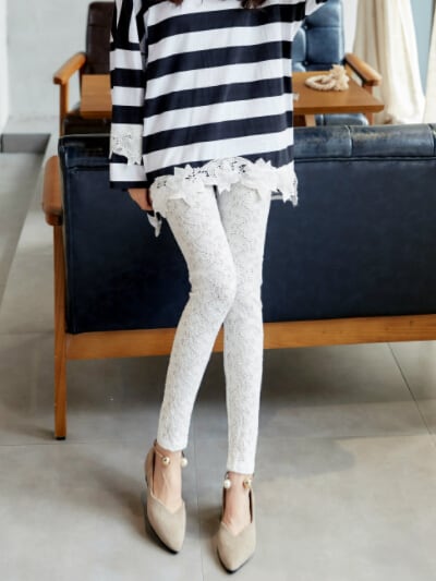 夏ファッション レディース ボトムス ズボン パンツ レギンス レース 細身スタイル