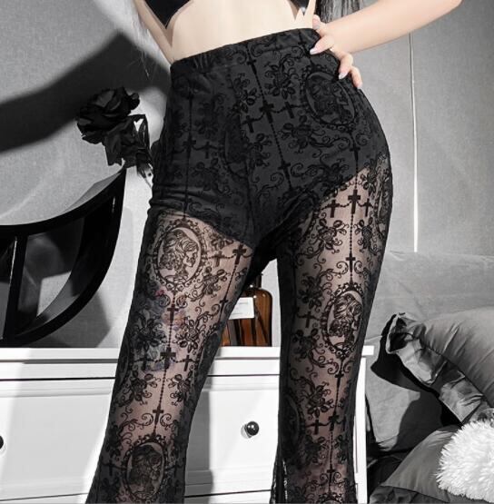 ボトムス ズボン パンツ ワイドパンツ レース シースルー ラッパパンツ
