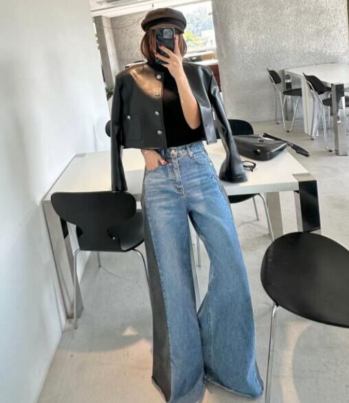 ボトムス ズボン ワイドパンツ キルティング デニム ジーンズ ハイウェスト