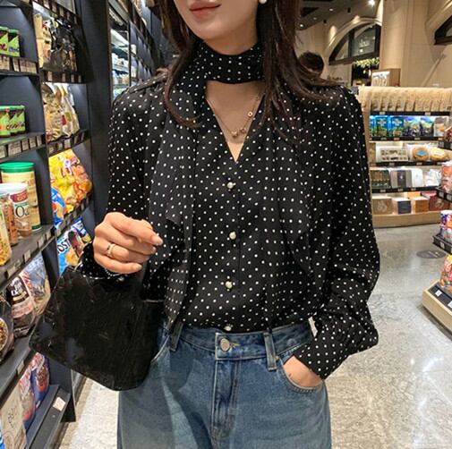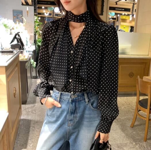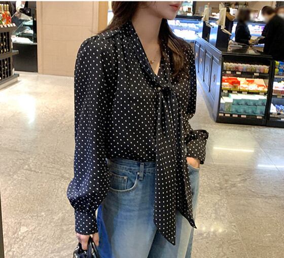 ブラウス シャツ トップス レディス 長袖シャツ ドット柄 気質 オシャレ オフィス OL 2026年春夏新作