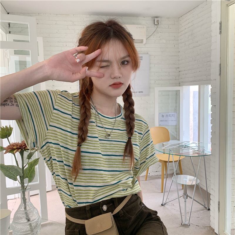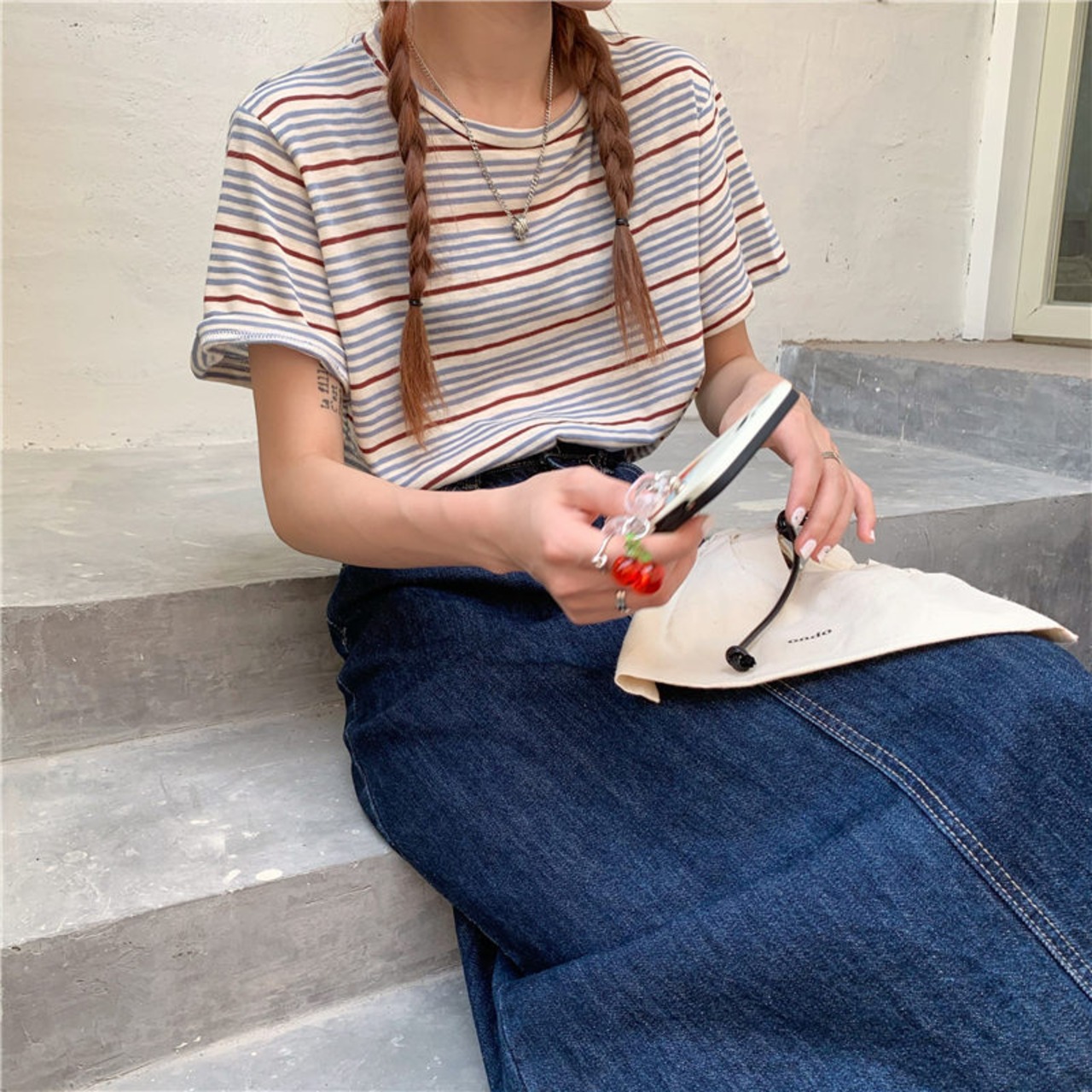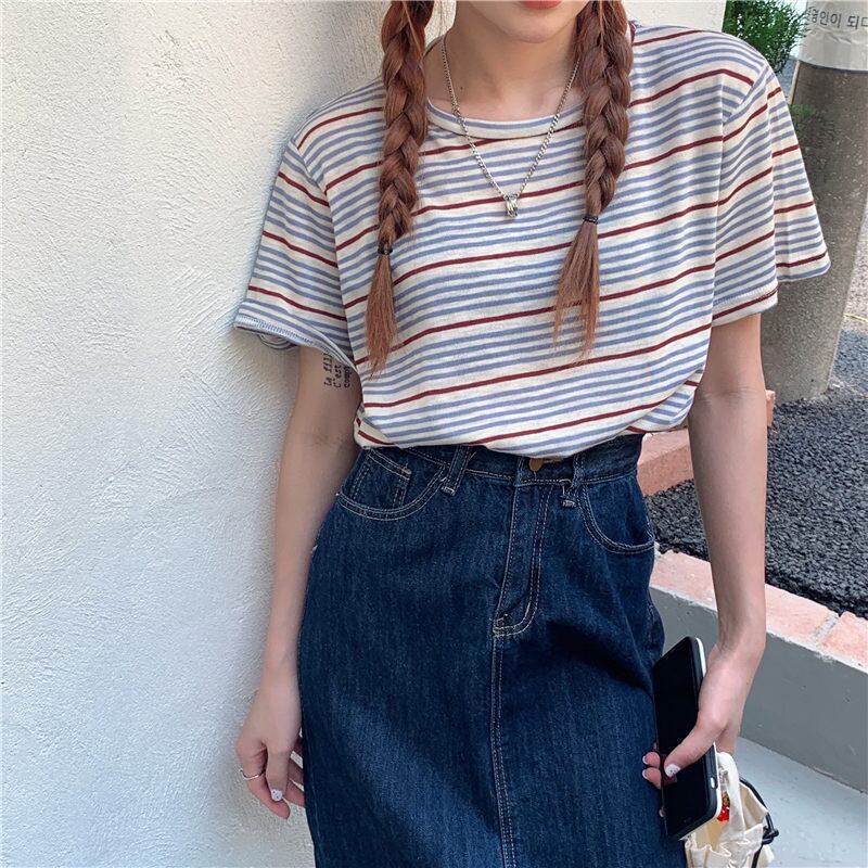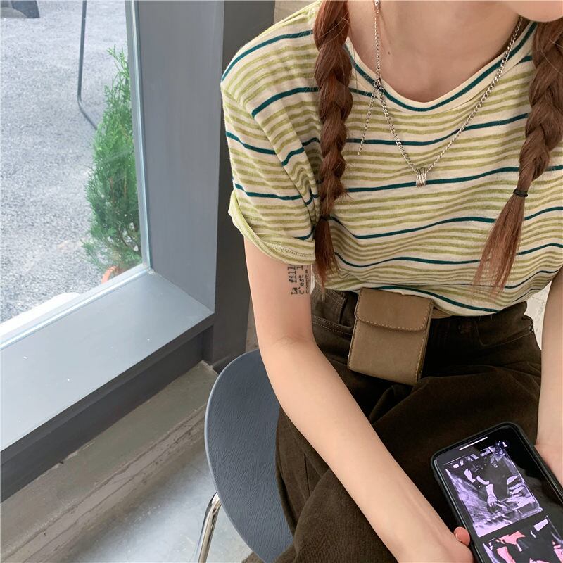 超人気 新作 気質 レトロ おしゃれ カジュアル ストライプ柄 Tシャツ