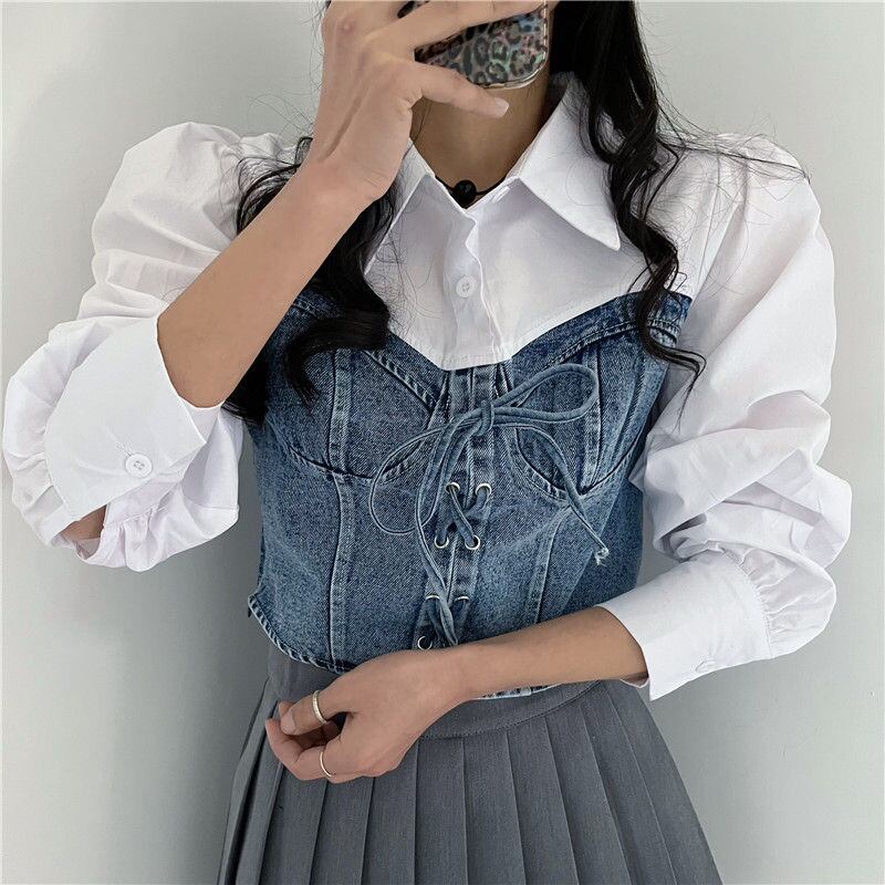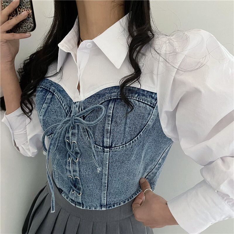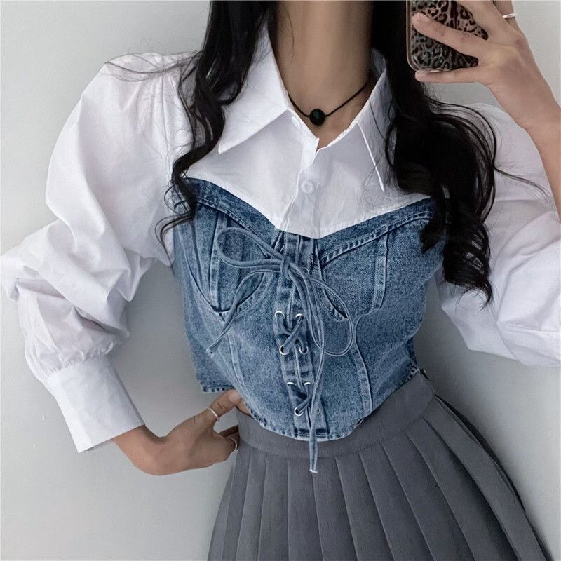 超人気INS 新作 目を奪われる おしゃれ デニム切り替え シャツ/ブラウス
