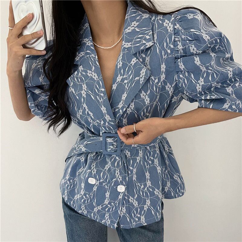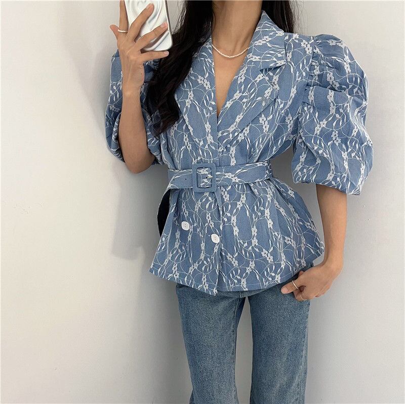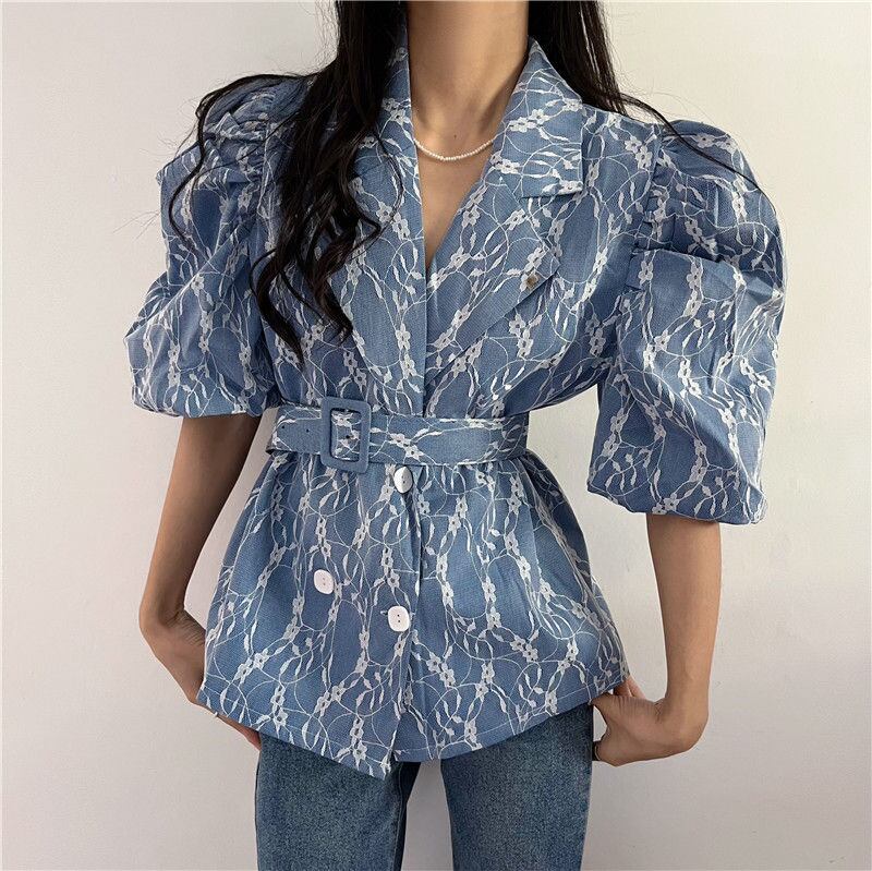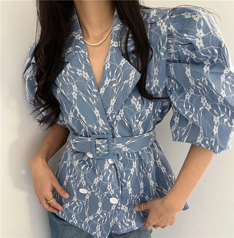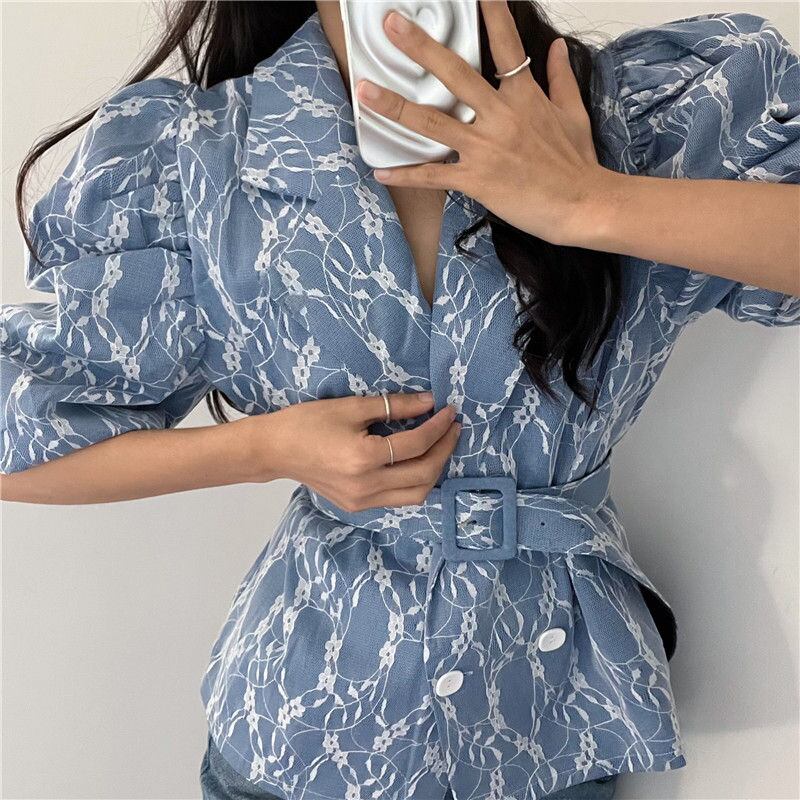 INS春 新作 気質 レトロ おしゃれ カジュアル パフスリーブ トップス