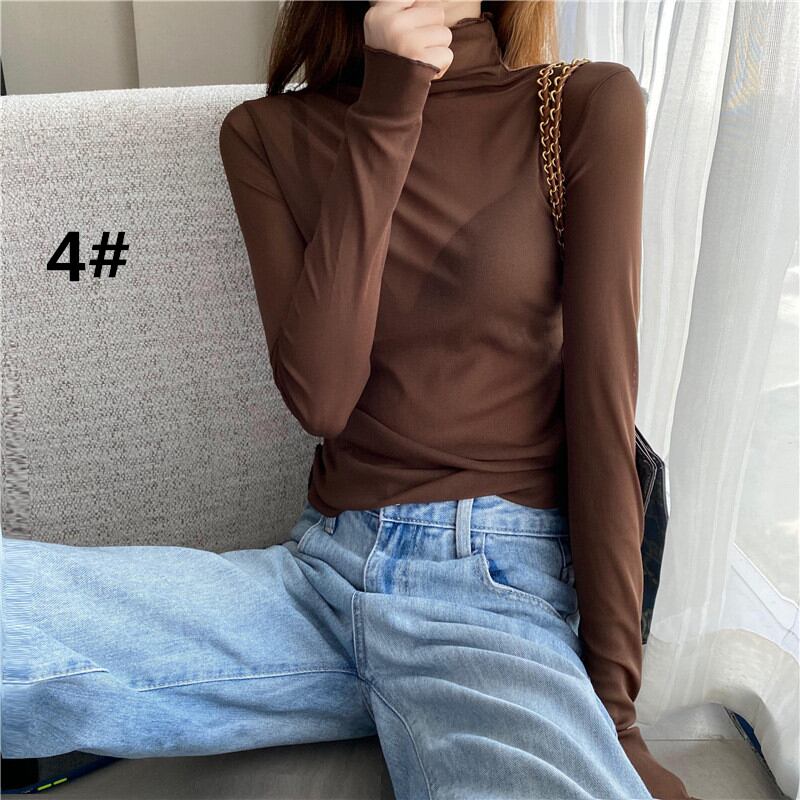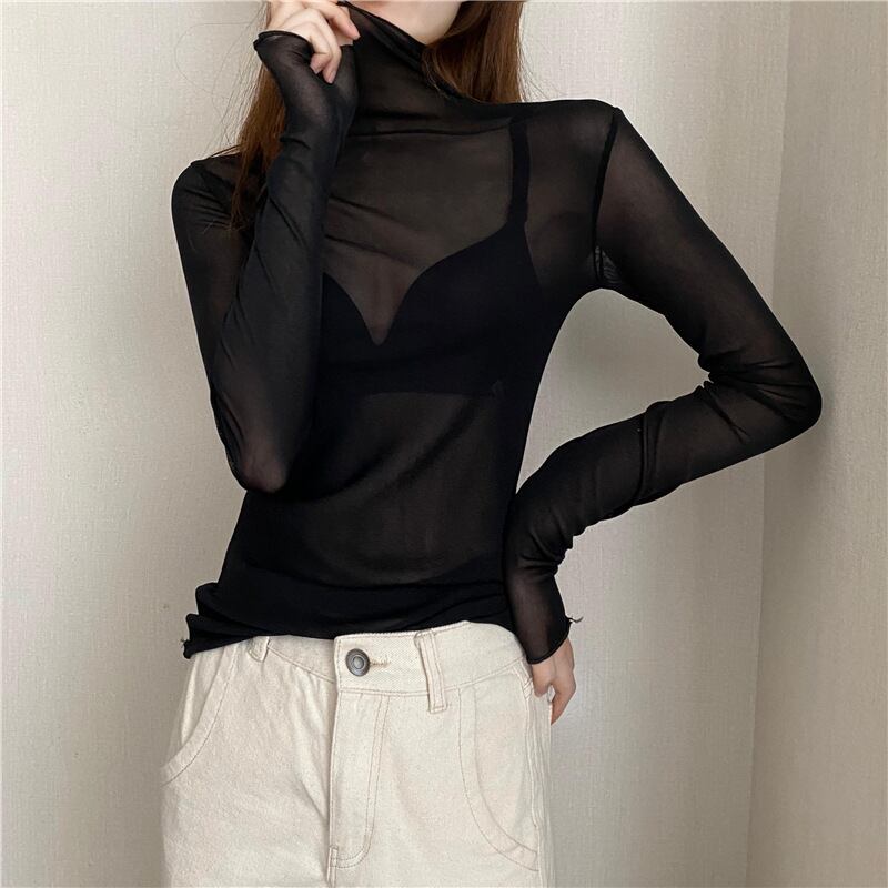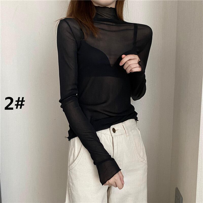 2026年新作 トップス レディース 長袖シャツ インナー レース メッシュトップス 透け感 ハイネック