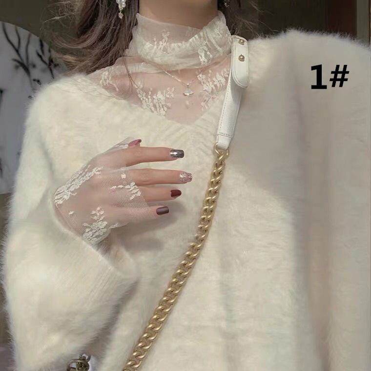 トップス レディース 長袖シャツ インナー レース メッシュトップス 透け感