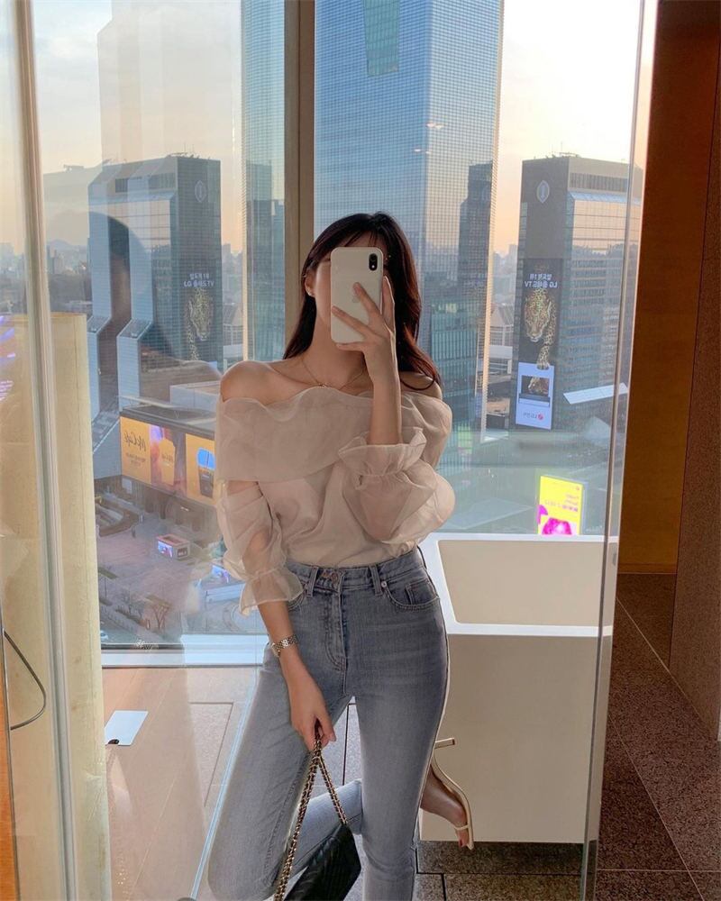 INS春 新作 気質 レトロ おしゃれ カジュアル オフショルダー シャツ/ブラウス