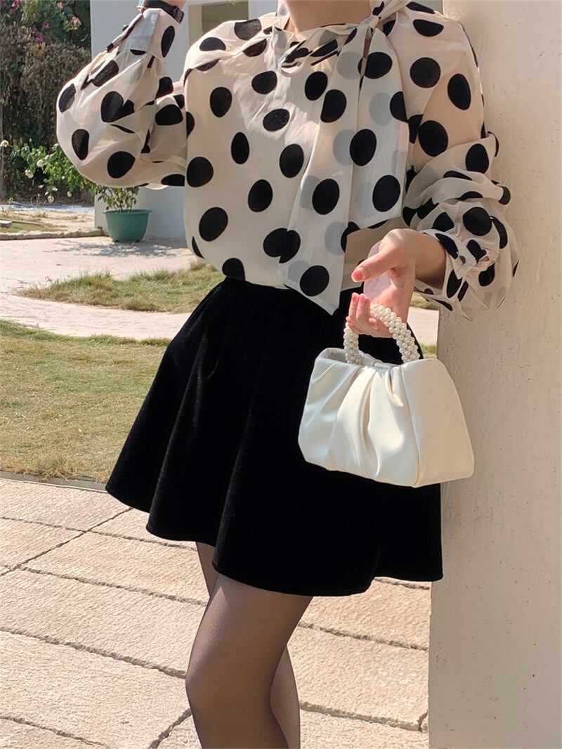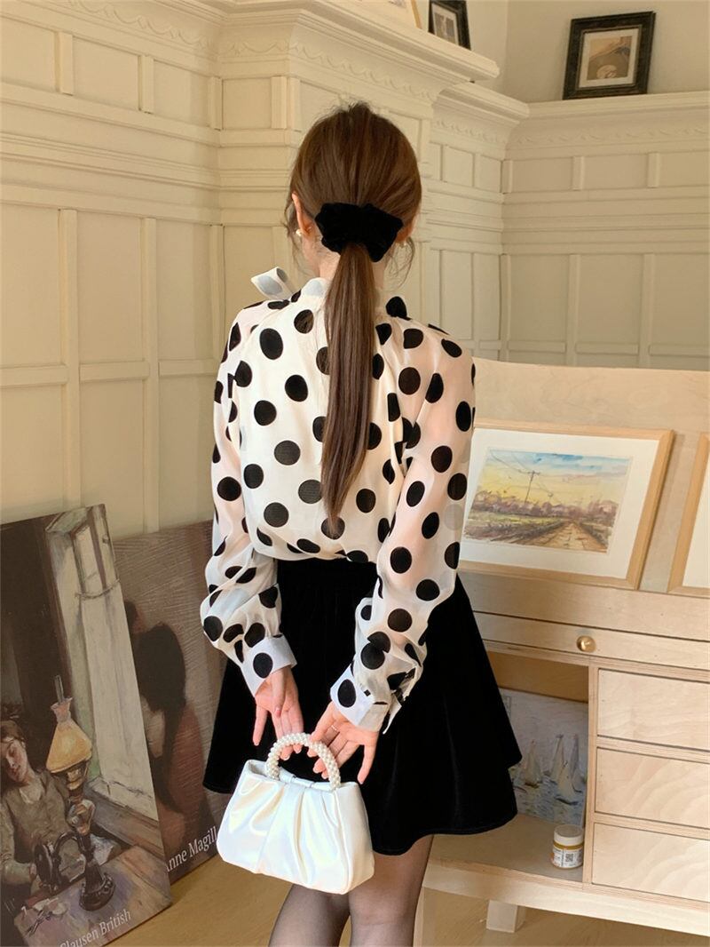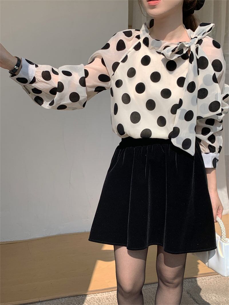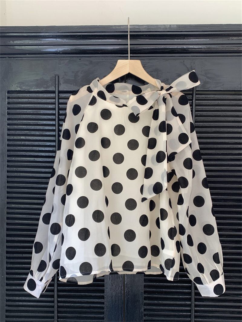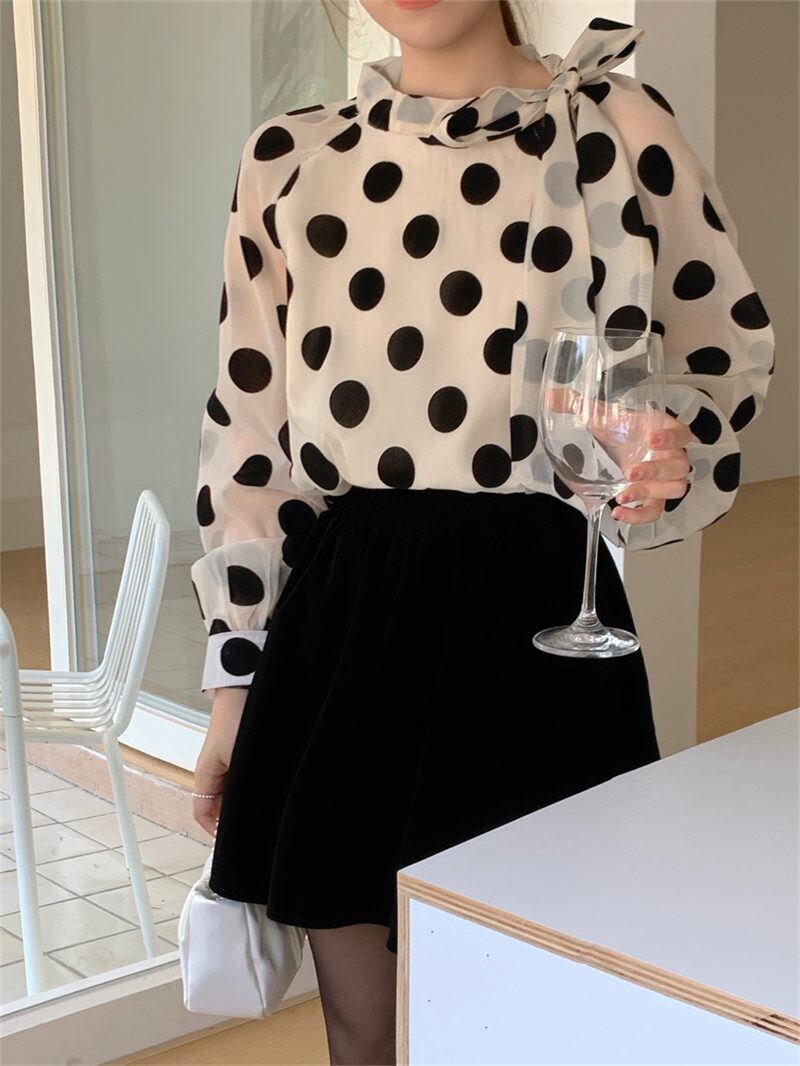 INS春 新作 気質 レトロ おしゃれ カジュアル ドット シャツ/ブラウス