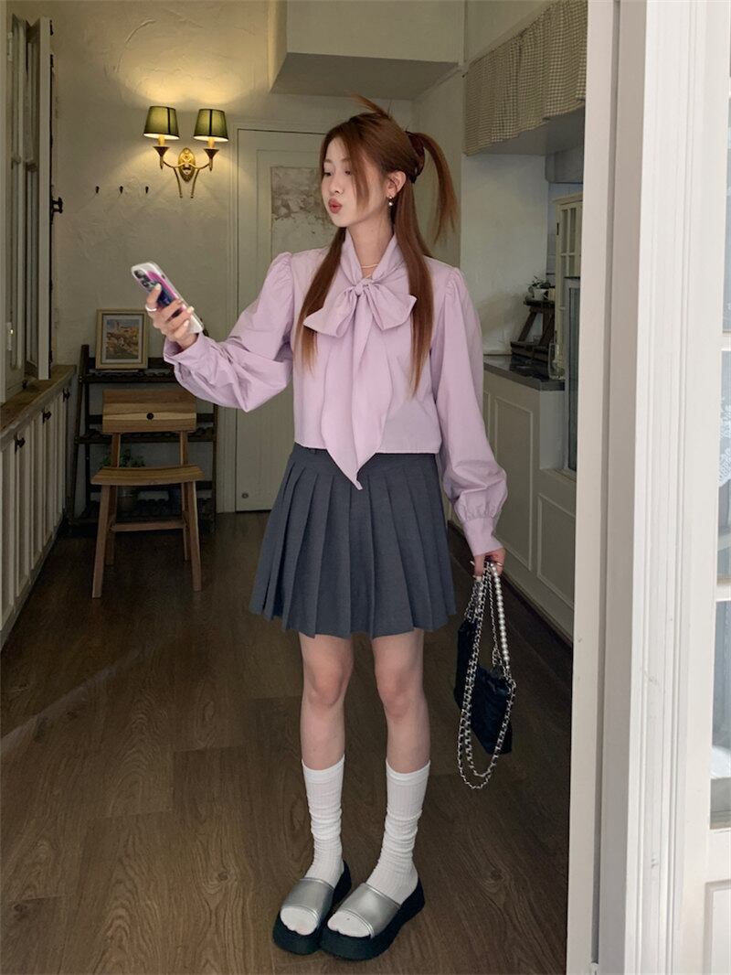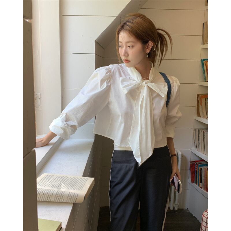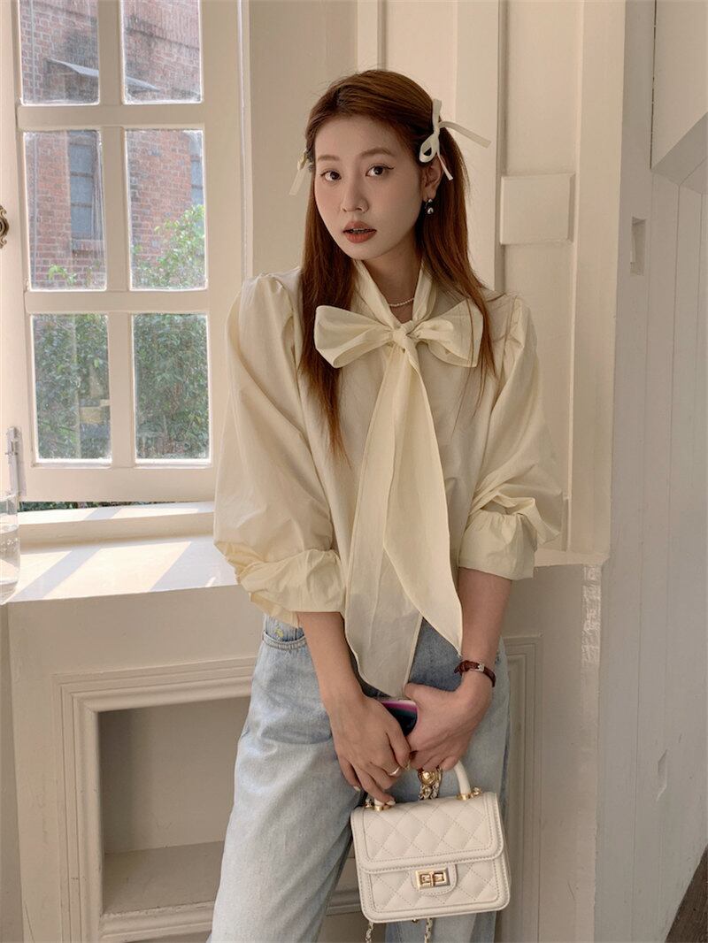 春INS 新作 気質 レトロ おしゃれ カジュアル リボン シャツ/ブラウス