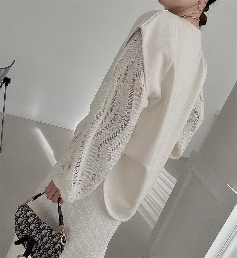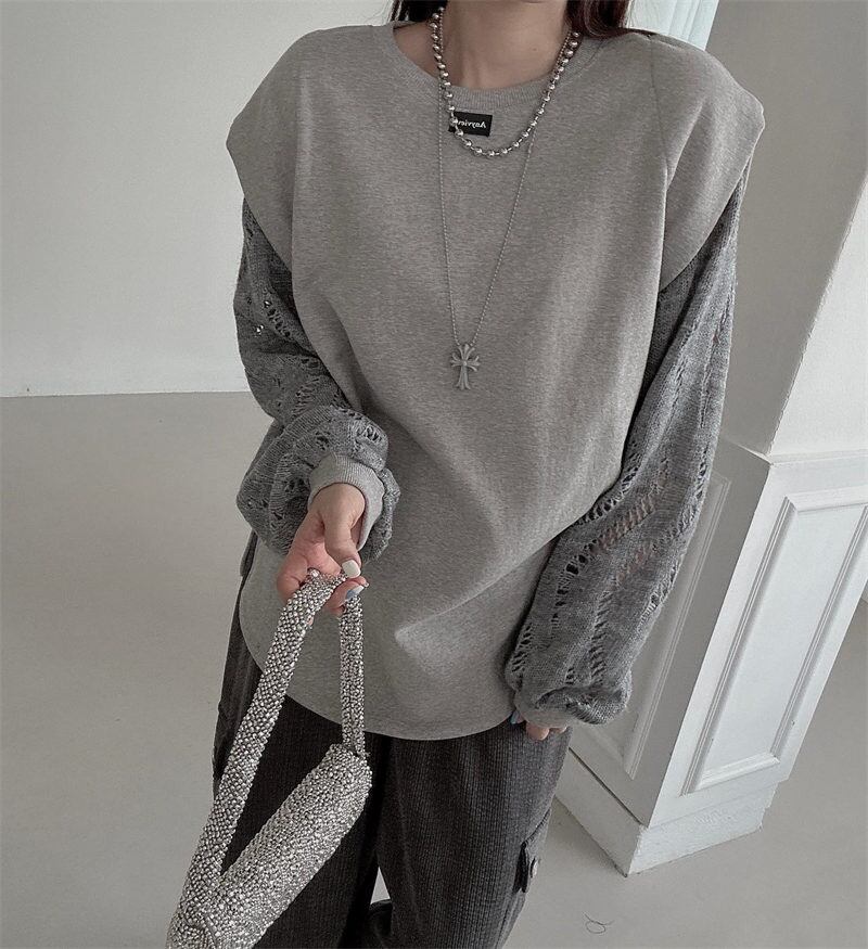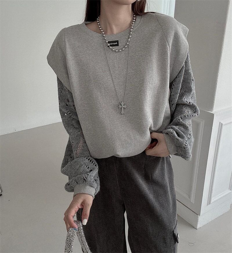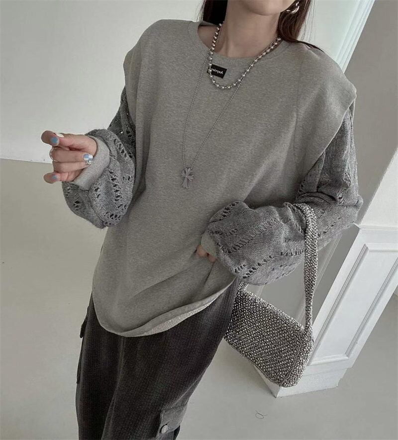 2023年秋冬INS 新作 レトロ 設計感 長袖 ニット切り替え トップス韓国風 トレーナー