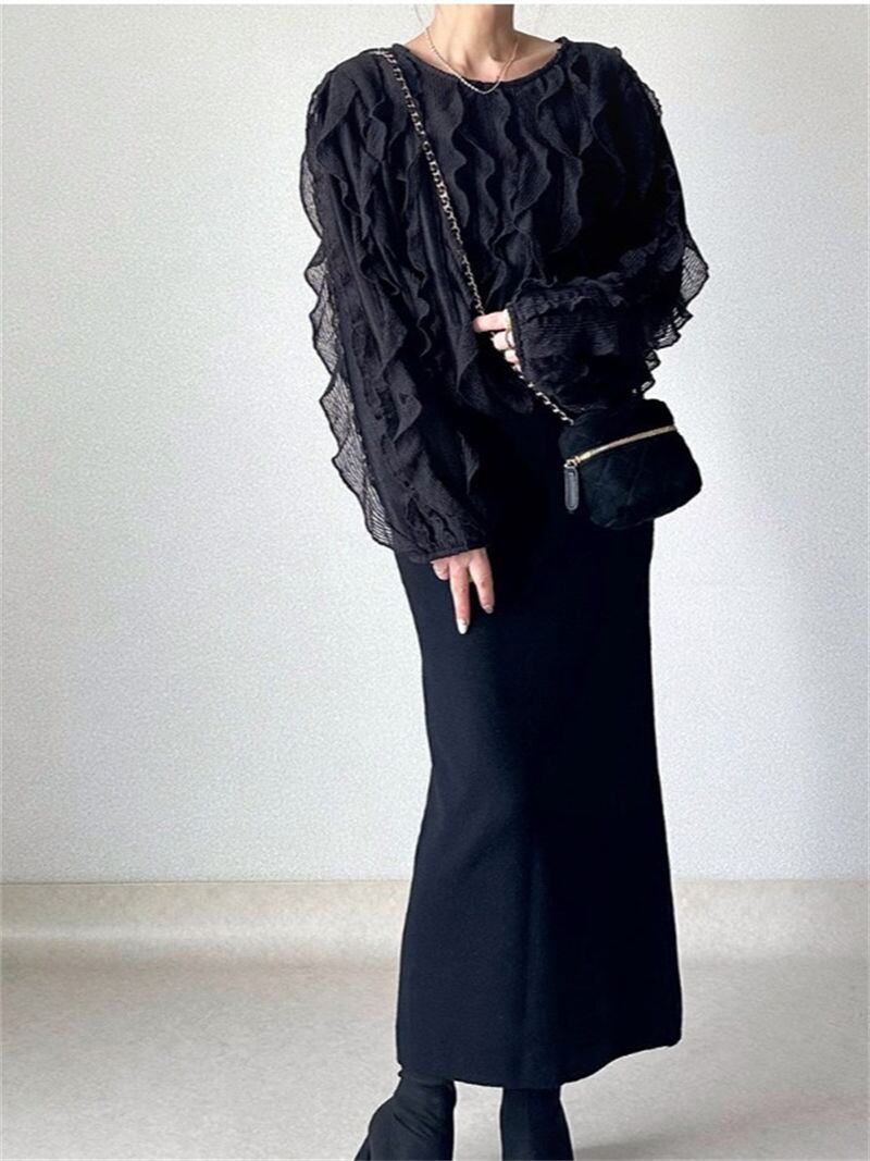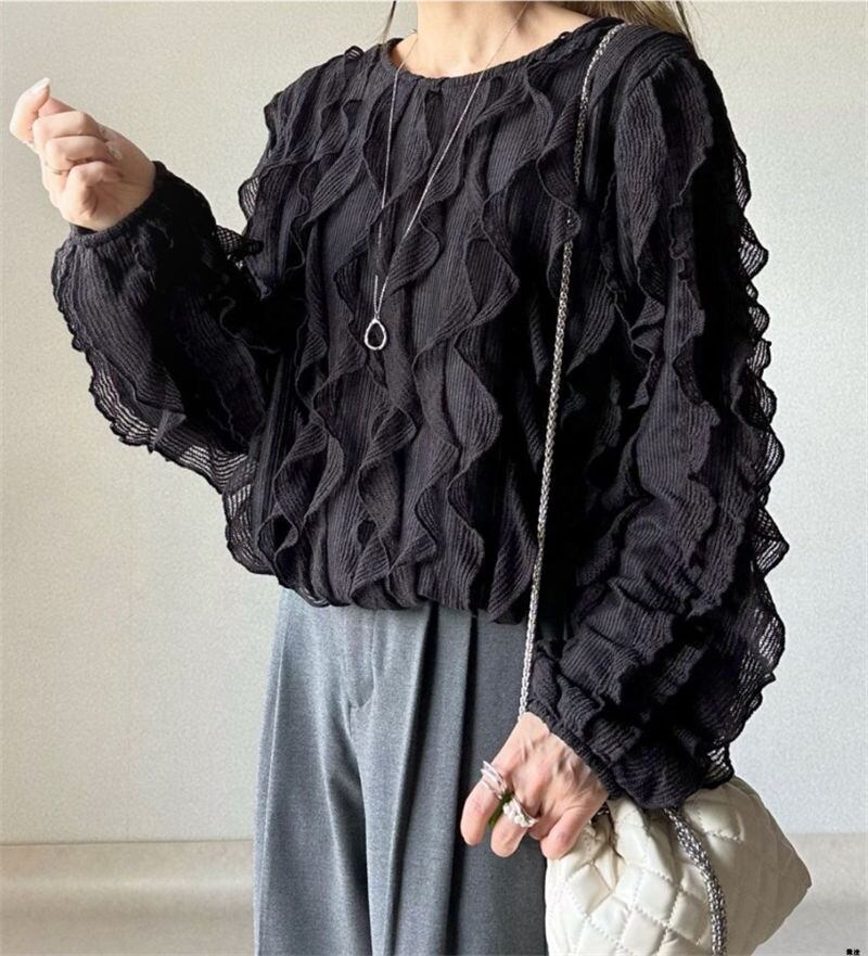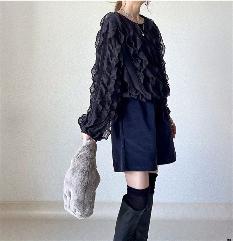 春INS 新作 気質 レトロ おしゃれ カジュアル フリル 長袖 シャツ/ブラウス