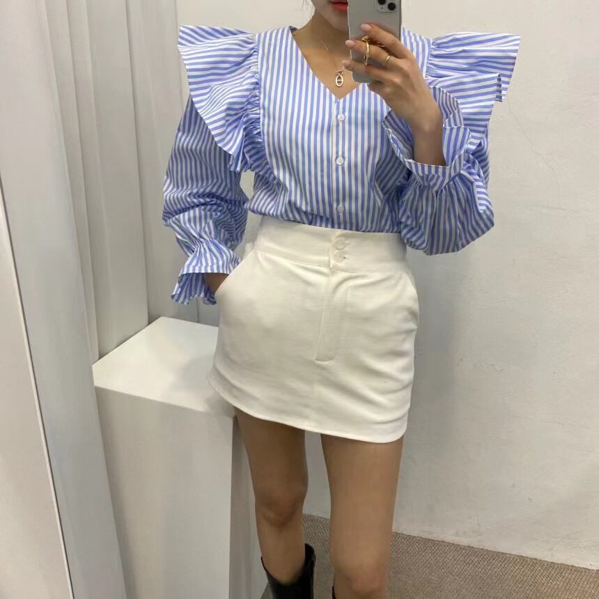 春INS 新作 気質 レトロ おしゃれ カジュアル フリル シャツ/ブラウス